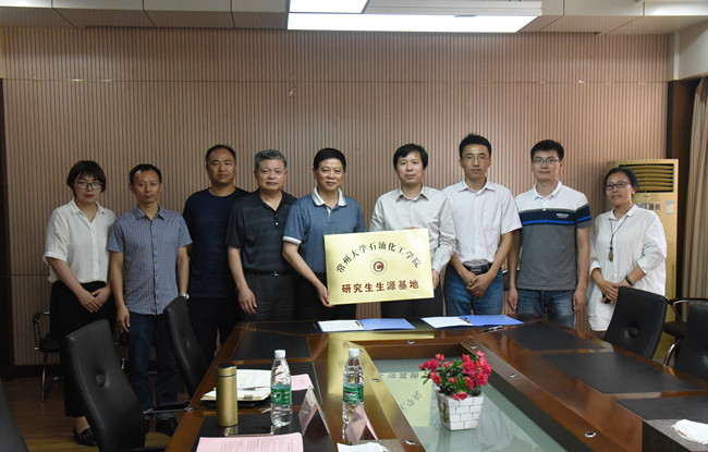 6月15日,马江权一行前往南京晓庄学院环境科学学院。南京晓庄学院环境科学学院院长刘光祥致欢迎辞,马江权介绍了学院研究生科研、人才培养以及研究生生源基地设立的意义。马江权、刘光祥代表双方签署了常州大学石油化工学院研究生生源基地建设协议并挂牌。