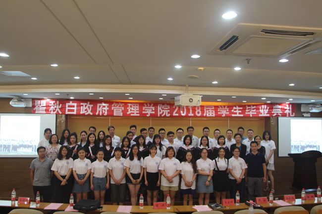 一段毕业纪念视频和毕业相册回顾了2018届毕业生四年的常大时光,展示了大学四年的懵懂、成长与收获,引起了在场师生的强烈共鸣。随后,瞿秋白政府管理学院院长助理王占国宣读对学院考研先进个人表彰决定,并颁发证书。2018届社会工作专业彭露同学作为毕业生代表发言,深情诉说了对学院四年的辛勤培养的感恩之情。她表示,四年的砥砺,早已让“求真务实,经世致用”的院训融入了学院学子的血液中,在今后的人生中,将谨记梦想与责任,做最好的自己。
