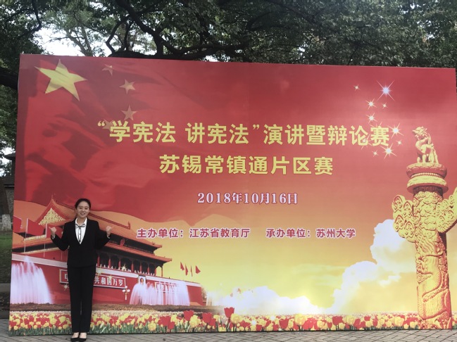 10月16日,由江苏省教育厅主办,苏州大学承办的江苏省学生“学宪法讲宪法”演讲辩论赛(苏锡常镇通片区赛)在苏州大学举行。来自苏锡常镇通70余所高校的选手参加了此次比赛。