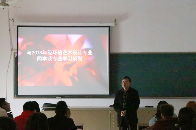任衣伟重点解读了环境艺术设计专业的人才培养方案,向2018级新生介绍了本专业的主干课程与选修课程,尤其针对中外建筑史、陶艺雕塑、建筑速写和计算机辅助设计等选修课程的重要性与必要性作了详细说明与具体解释。同时,运用形象生动的教学案例为同学们演示了Photoshop、Sketchup+lumion和3DMAX等专业核心软件,阐释了环境艺术设计相关课程的内容原理与技术操作,鼓励同学们充分利用选修课程来加强工具软件的学习与应用,不断夯实专业知识和实践技能。
