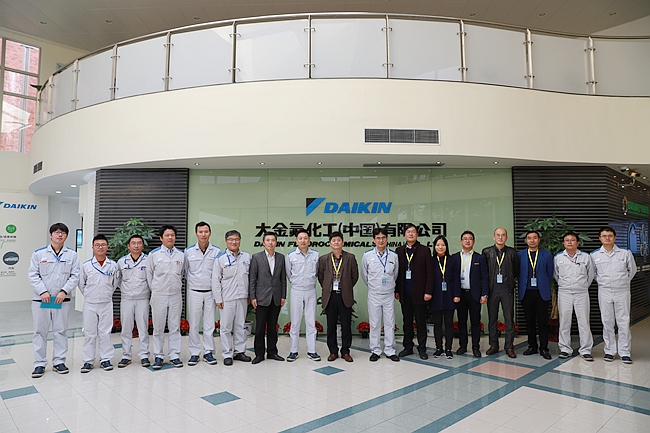 11月23日,石油化工学院赴大金氟化工(中国)有限公司开展产学研合作交流活动。大金氟化工(中国)有限公司副总经理中原秀树、研发中心负责人钱福椿、制造部负责人胡志毅、人事部负责人郭鑫,常州大学石油化工学院院长陈智栋、院党委副书记宣慧、副院长薛冰参加交流活动。