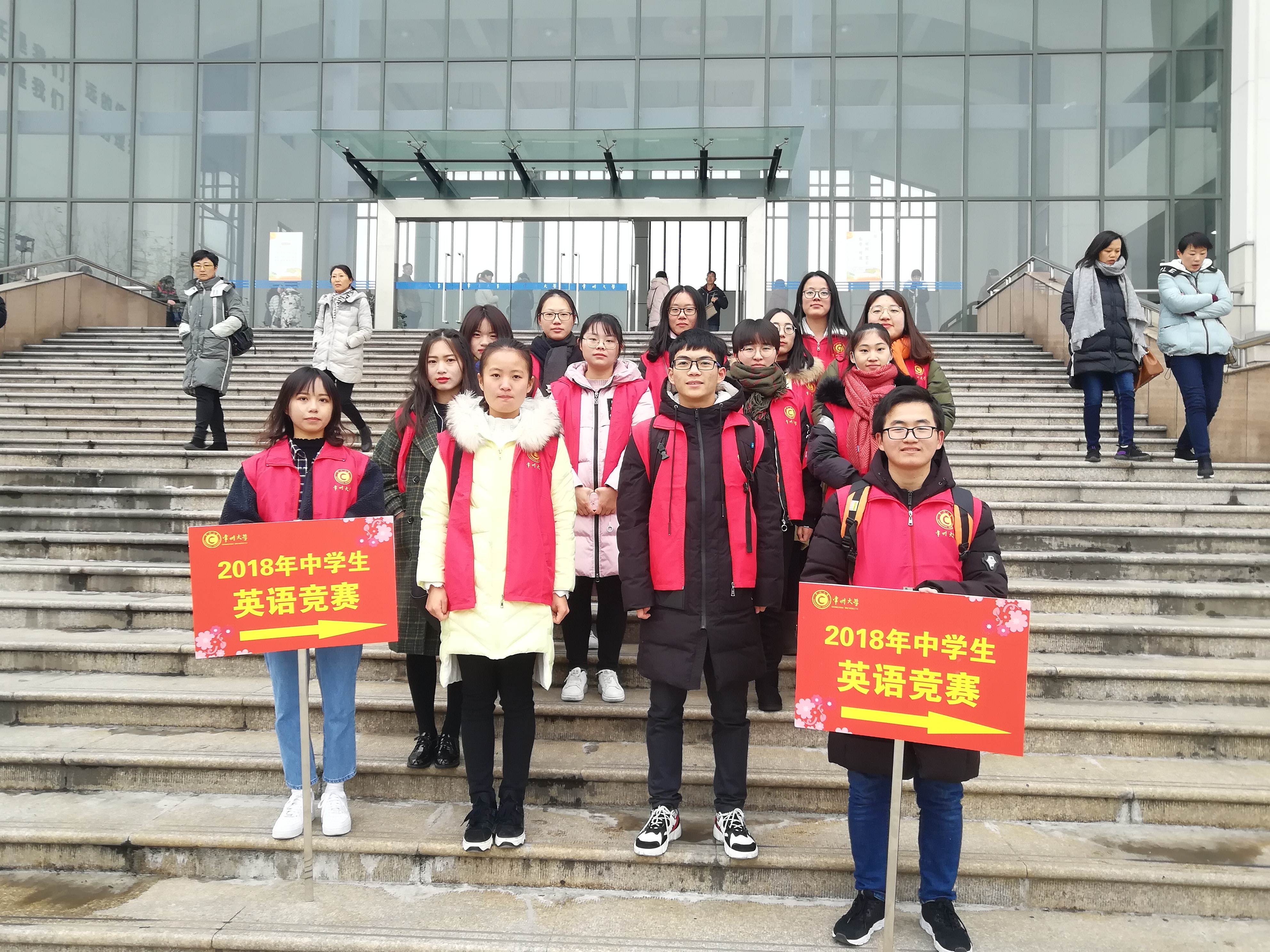 12月9日,2018年全国中学生英语能力竞赛在常州大学举行,周有光语言文化学院的100名志愿者全程参与竞赛的各项服务,获得竞赛现场参与人员的一致好评。