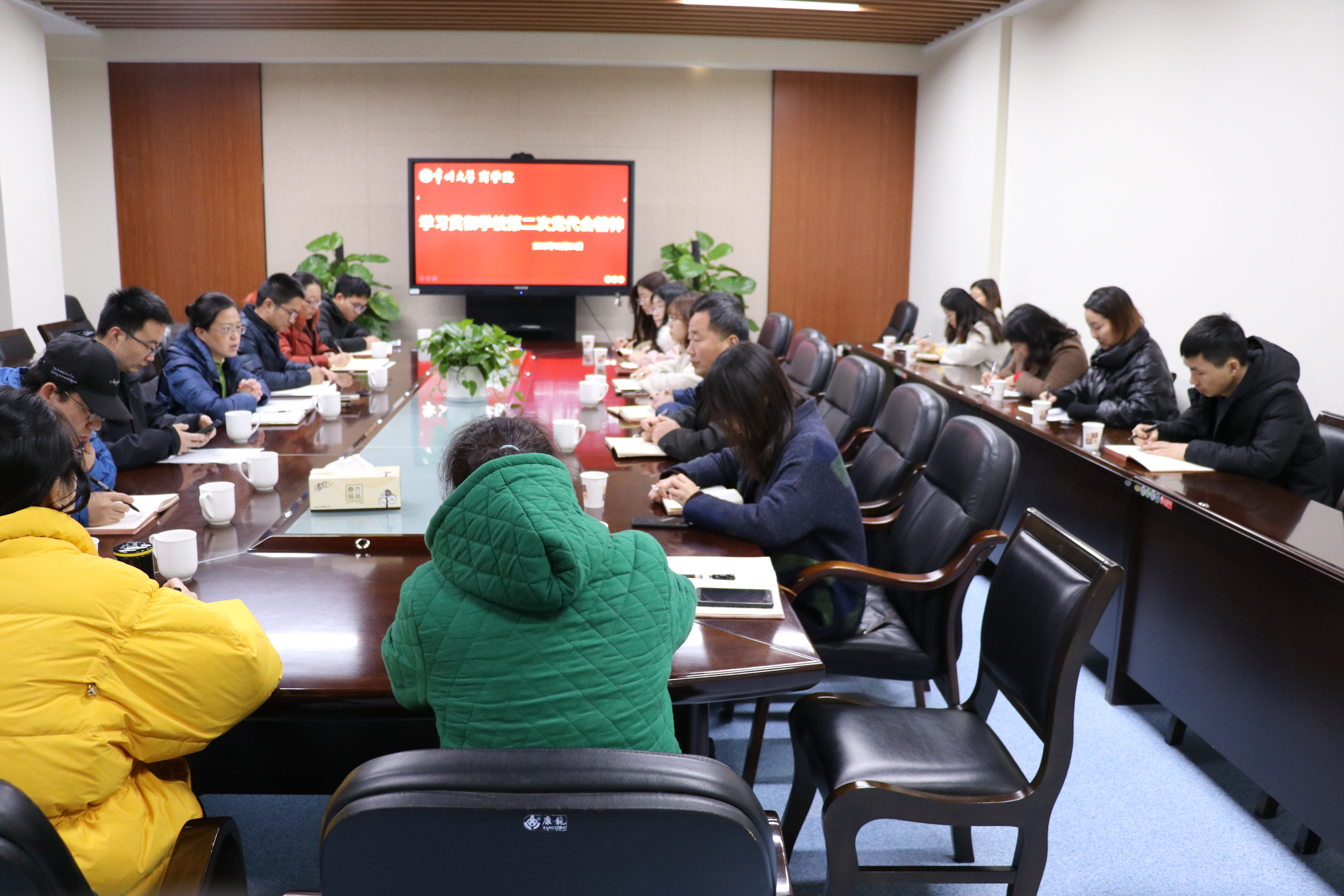 会上,江涛涛传达了学校第二次党代会精神,并带领大家共同学习了校党委书记陈群同志作的题为《把握新时代要求,推动高质量发展,为全面建成特色鲜明的高水平地方领军型大学而努力奋斗》的工作报告和校纪委书记邱正祥作的题为《全面从严治党,忠诚履责担当,为推动学校高质量发展提供坚强纪律保障》的工作报告。