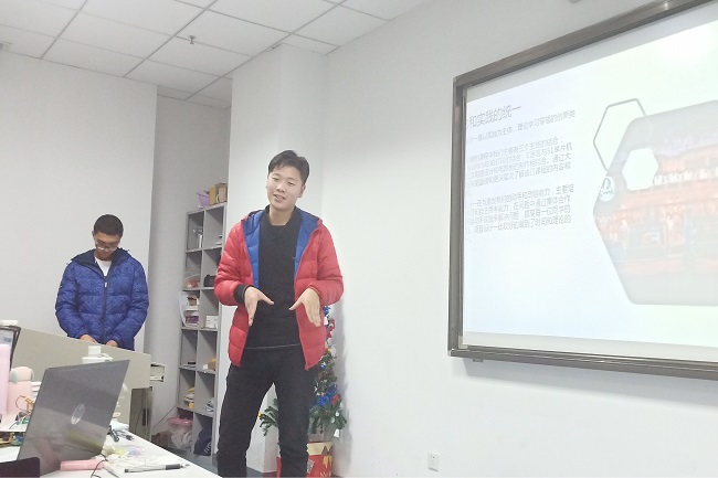 本次汇报由同学们自由组队,分成11个团队依次展示了本学期项目设计成果及对未来研究方向的规划。在内容上,同学们的汇报课题立足于实际应用,围绕机器人功能、具体技术研究、系统初步建立等不同角度展开,多维度、有创意地展现了各自团队的创新设想及研究思路;在形式上,本次汇报过程真实模拟了“挑战杯”答辩模式,同学们不仅展示了自己的项目成果,也积极回应老师的质疑,接受老师的批评和建议。整场汇报会在热烈的讨论中进行,同学们在不断提出问题、解决问题的过程中锻炼了自己的临场反应能力、实践应用能力,提升了自己的创新思维。