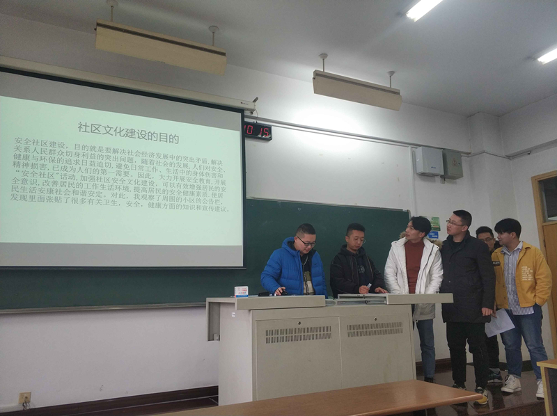 围绕寒假“社区安全调研”社会实践主题,全体同学以小组形式,用图文并茂的PPT展示了各自寒假在社区进行调研的结果。社区安全调研内容涉及到社区安全文化建设、用电安全、消防设施、道路交通安全等,同学们从安全工程专业的角度,对自己家所在社区安全建设进行观察,将课本的专业知识应用在具体生活实践中,增强了同学们的安全意识和理论联系实际能力。