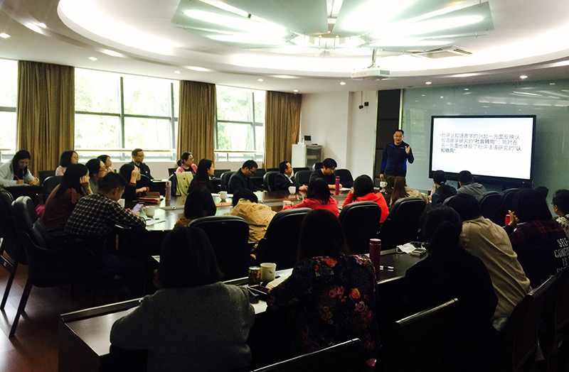 讲座中,张辉首先介绍了批评认知语言学的理论来源、模型架构和前沿信息。以中美贸易战为例,使用批评认知语言学的方法选择与中美贸易战直接相关的中国、美国和英国主要媒体为分析对象,对贸易战中各大媒体的语言策略、话语侧重、传播效果等作了深度解析。从批评认知语言学的角度更好地了解中美贸易战在话语、舆论和传播领域的交锋及其在世界范围内产生的影响,提供了很好的视角、帮助与参考。辅导中,张辉从语言类国家社科基金项目的选题开始,结合自己申报和评审经历,对如何选题、如何论证、如何呈现等进行了深入浅出的剖析和介绍。他希望我校语言类老师既要紧紧抓住语言研究的前沿方向和国家现实需求,也要充分利用区域特色和区位优势,以差异化竞争的方式实现自己科研的科学性和有效性。(通讯员 何伊凡)