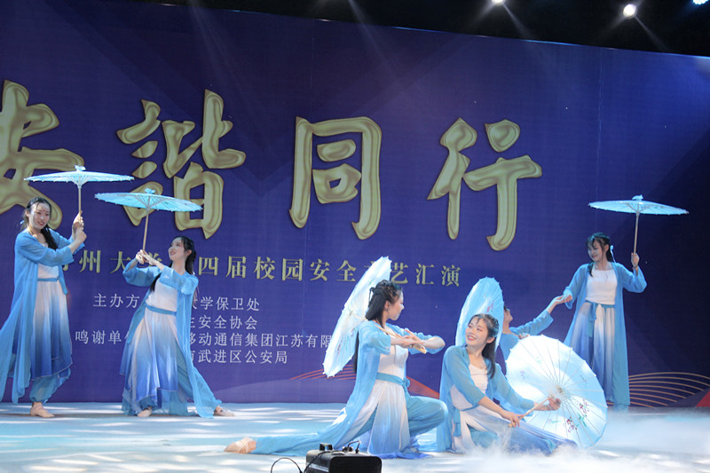 单程票乐队带来的《Come as you are》和《兰州》激情澎湃,拉开了活动的序幕。DS舞社的街舞青春的质感迸发,舞台也随之染上了丰富的色彩。石化学院的《安全演习》为安全知识增加了趣味,在欢笑声中叙述了日常生活中的安全隐患。材料学院的歌曲《飘向北方》道出了当代青年的艰辛与坚持,细腻的情感与高超的演唱技巧引起共鸣。制药学院献上了舞蹈《落花情》,道是“岁月无情人有情”,她们一身柔情感人,追逐着生命与岁月的美好。信息院的小品《微信扫码》以独特的方式警醒人们诈骗的无处不在,提高警惕至关重要。武进公安局团委副书记朱天亮的一首《等待》惊艳全场,巡特警大队队员的擒拿格斗、摔踢滚打、拳腿法展示以及女子防身术的现场教授将晚会推向了高潮。环境院的舞蹈《风筝误》带着满满的烟雨江南气息,一派岁月静好。楼兰剧社的《午夜出租车》在小人物的挣扎中,显现了人间真情,强调了提升安全意识的重要性。最后,晚会在大学生安全协会的安协大合唱《滆湖中路的日子》完美收官。