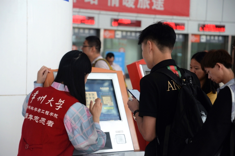 志愿者们有的在自动售票机旁协助乘客自助购取票,有的引导乘客们有秩序乘坐客车,有的帮助司机整理乘客的大件行李。同学们服务热情高涨,耐心细致、任劳任怨,认真做好各项服务工作,以实际行动向新中国成立七十周年献礼。