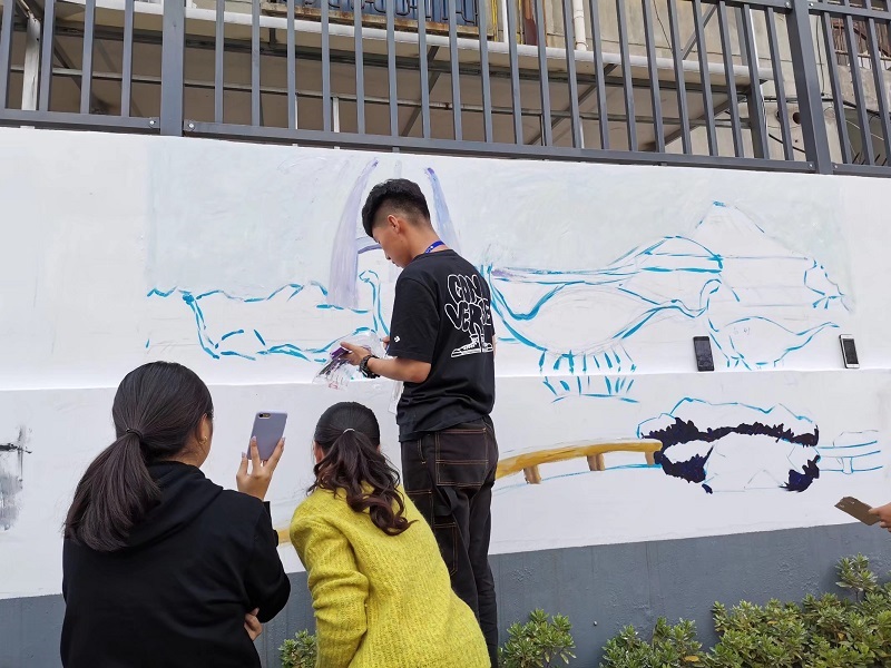 活动自八月份启动以来,志愿者们就积极查阅常州文化和古运河历史文献,广泛寻找绘画元素。通过多次实地勘察和讨论研究确定了主题和初步方案,同时与主办方及其他参与单位及时沟通,保证了整体风格的一致呈现。经过近两个月的前期准备、具体实施和反复调整,志愿者们最终圆满完成彩绘任务,原本破旧的围墙穿上新衣,成为古运河段一道美丽的风景线。