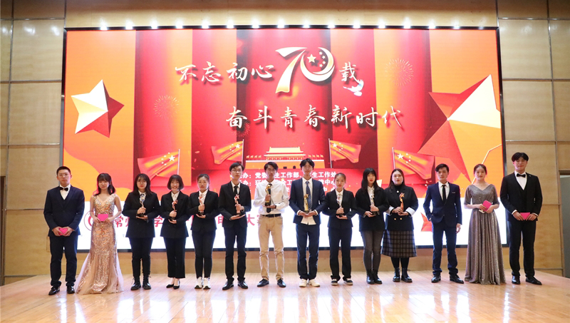 为引导广大青年学子努力成为担当民族复兴大任的时代新人,认真学习贯彻习近平总书记在中央政治局第十九次集体学习时的重要讲话精神,献礼新中国成立70周年,12月6日晚,由学工处主办,环境学院自律中心承办的第十届微电影大赛决赛在文彰楼报告厅举行。本次微电影大赛主题为“不忘初心七十载 奋斗青春新时代”,学工处及各学院辅导员老师、各参赛队伍和学生代表参与活动。