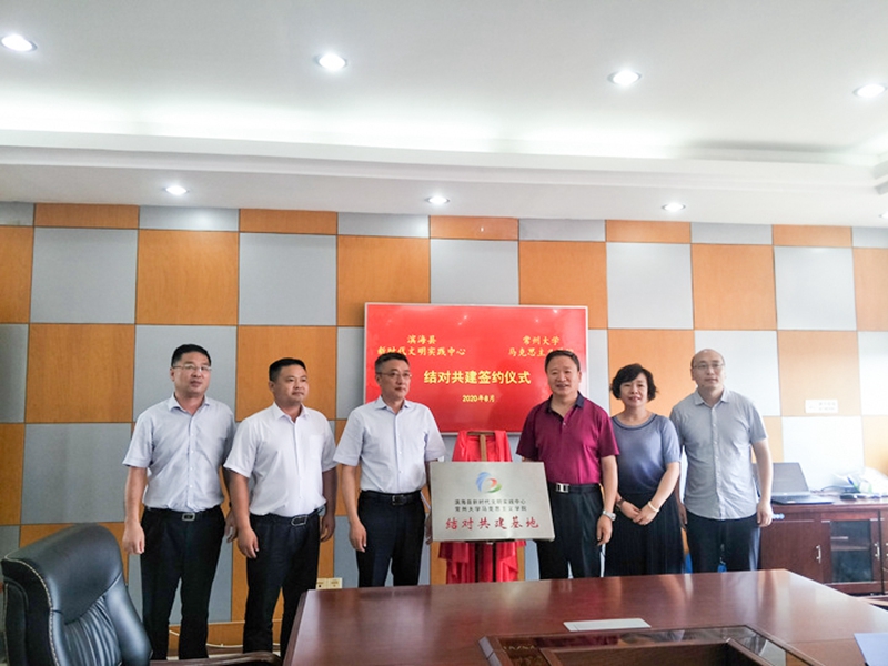 8月14日上午,马克思主义学院与滨海县新时代文明实践中心结对共建签约仪式在滨海县人民政府会议室举行。马克思主义学院院长兼党总支副书记刘晓华与滨海县委常委、宣传部长李军代表双方签订协议。学校人文社科处处长葛彦东,马克思主义学院党总支书记侯新兵,滨海县委宣传部副部长、文联主席张海峰等同志参加了签约仪式。