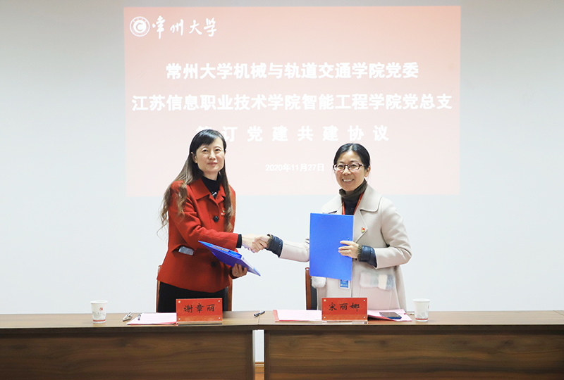 11月27日,江苏信息职业技术学院智能工程学院党总支、常州大学机械与轨道交通学院党委党建共建签约仪式在科教城校区乐行楼举行。江苏信息职业技术学院党委委员、组织部部长宋丽娜,智能工程学院院长甘辉、党总支副书记孙静、副院长严惠,模具专业教师代表及模具班40名新生参加活动。常州大学机械与轨道交通学院党委书记谢章丽,院长张屹及班子成员和专业教师参加活动。机械与轨道交通学院相关负责人主持活动。