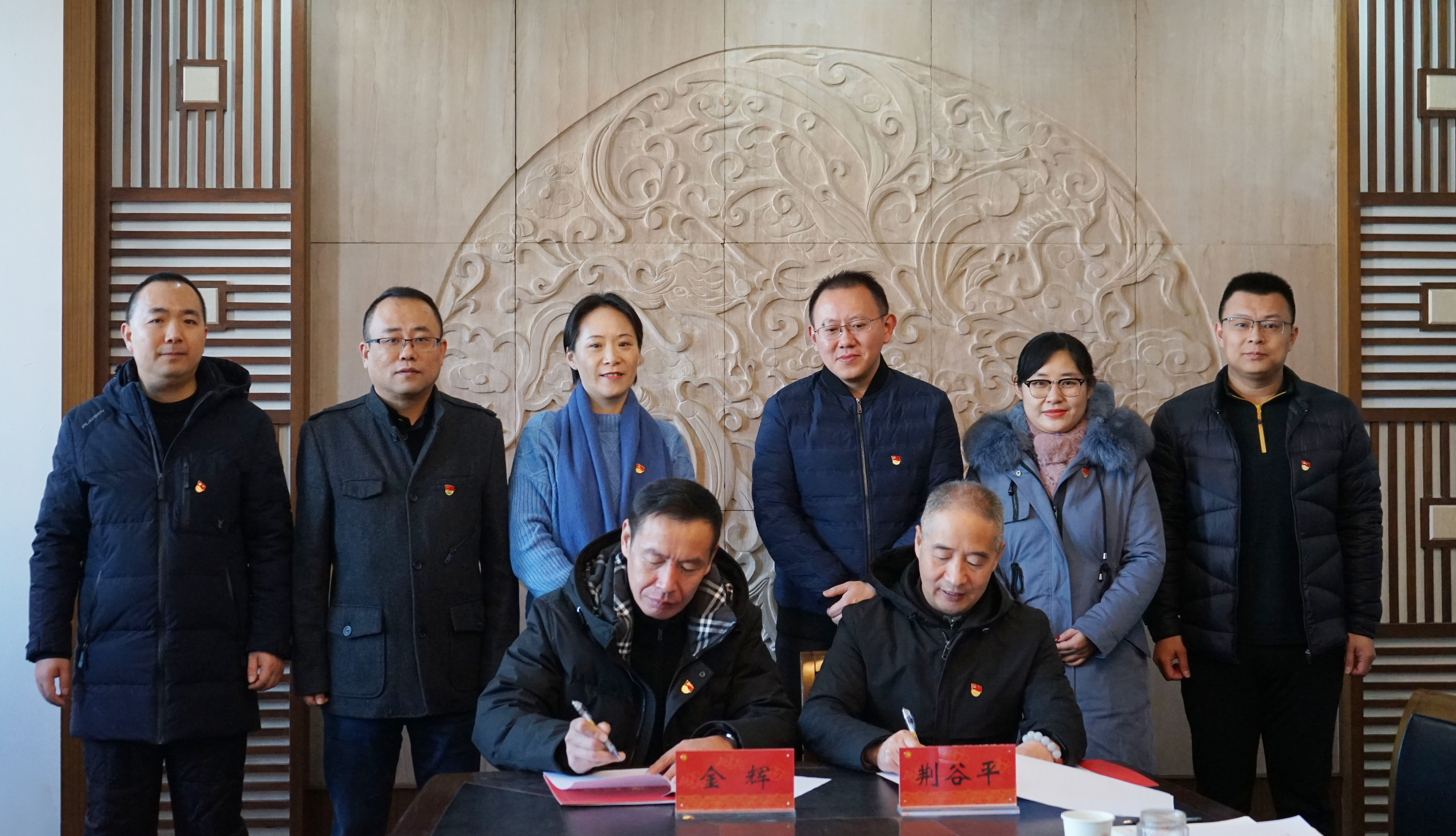 会上,金辉、荆谷平代表双方支部签署党建共建合作协议书并揭牌。陶洁、阮霞代表双方单位签署专项人才培训基地协议书并揭牌。