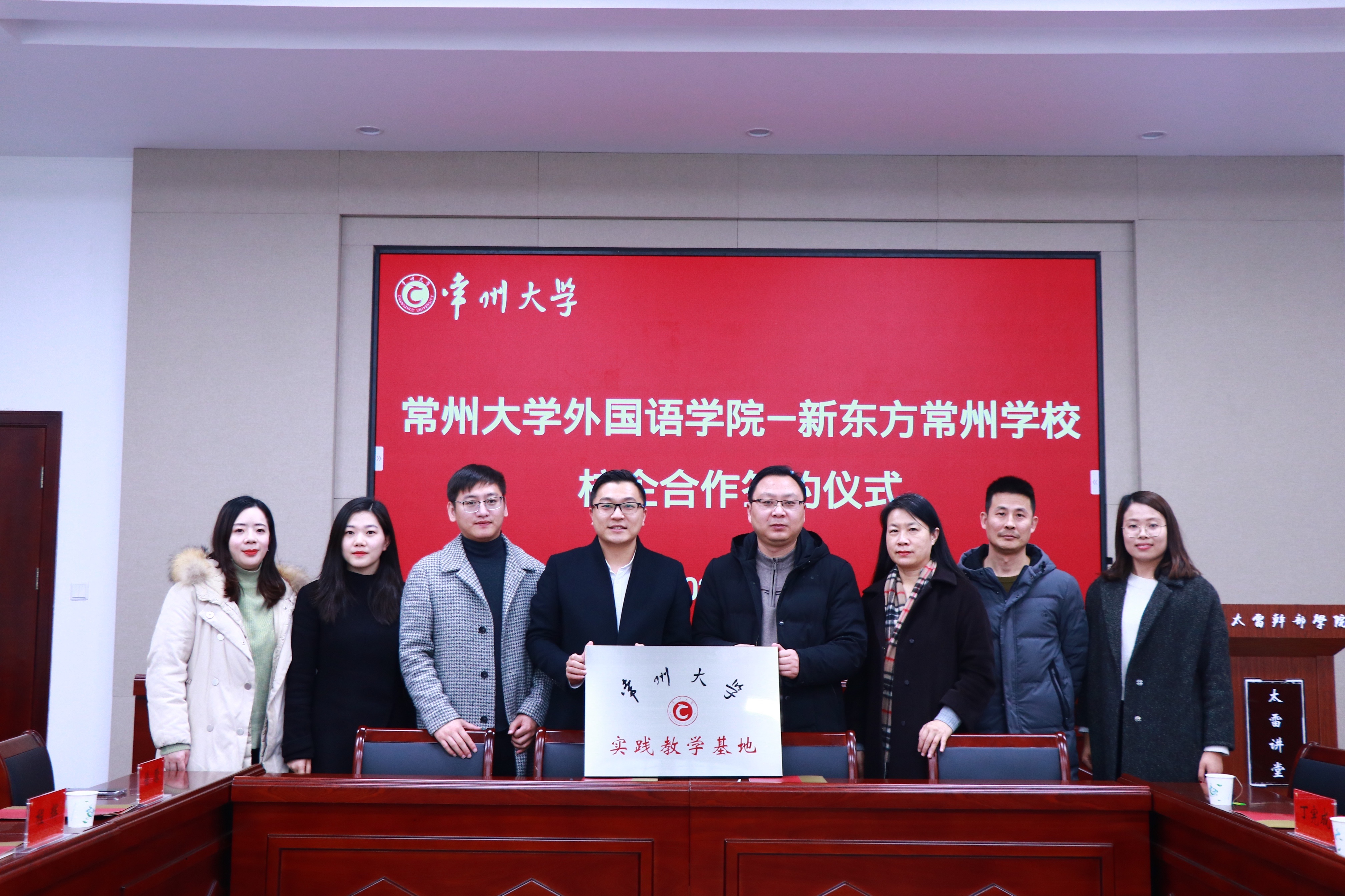 1月27日,常州大学外国语学院与新东方常州学校校企合作协议签约仪式在科教城校区文彰楼举行。新东方常州学校校长韩磊,人力总监程辉,国外考试部运营高级经理谈艳,国外考试部教学经理徐朦,常州大学外国语学院党委书记薛勇,院长陈颖,及相关教师代表出席签约仪式。签约仪式由院党委副书记丁宪成主持。