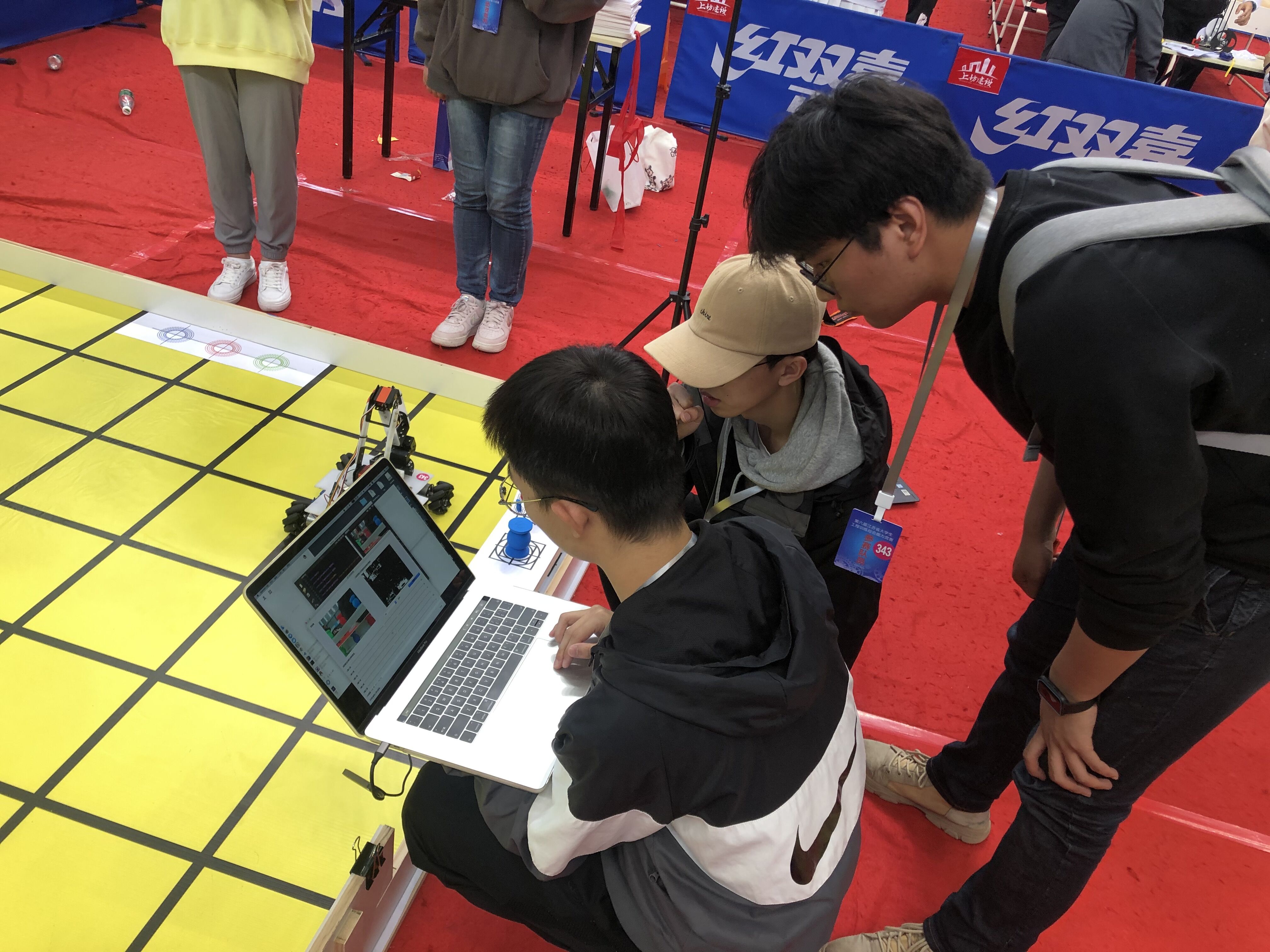 二等奖团队“智能+智能物流搬运机器人”项目的参赛同学在比赛现场
