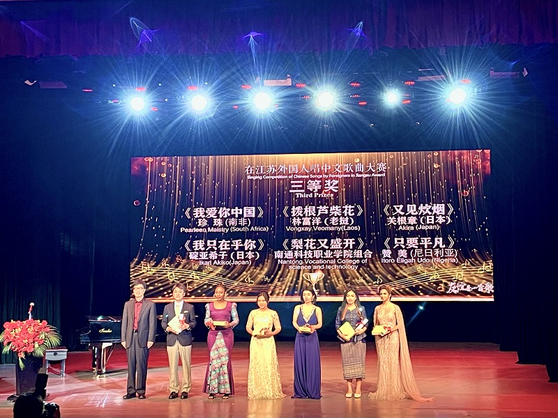 5月7日—8日,由江苏省人民对外友好协会、江苏省文学艺术界联合会主办,省友协办公室、省音协承办的“友谊是一首歌”——在“江苏外国人唱中文歌曲大赛”决赛和颁奖音乐会在南京举行。我校音乐与影视学院崔倡老师指导,老挝籍留学生VONGXAY VEOMANY演唱的江苏民歌《拔根芦柴花》荣获三等奖,并在颁奖音乐会上展演。副省长惠建林,省政协副主席、党组副书记阎立聆听音乐会并为获奖者颁奖。