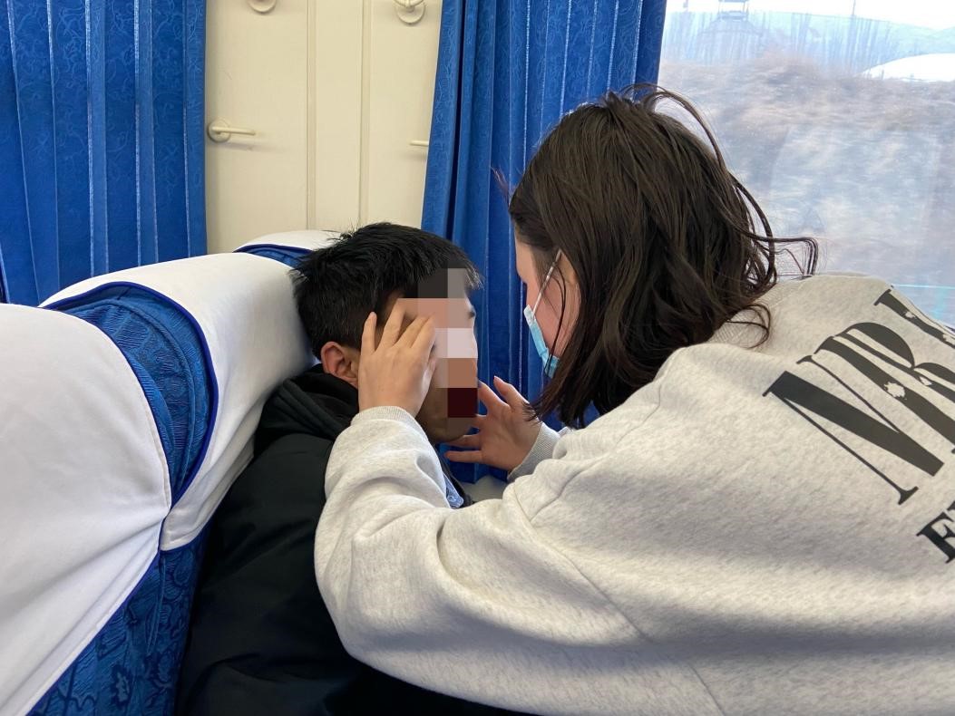 马国秀到达现场后,询问周围乘客后,得知患者突然抽搐呕吐倒下。在检查其生命体征并结合临床表现后,初步认定为急性癫痫发作。马国秀第一时间与护理专业的张媛媛老师取得了联系,确定病情状况后根据张媛媛的急救指导,迅速展开抢救工作。马国秀让患者取平卧位,由于环境限制,找来了两双筷子,制作成简易压舌板,在众人帮助下放在患者口中,防止其咬伤舌头造成窒息。松开了患者的衣领和腰带,并将患者口鼻腔里的分泌物及时清理干净,让其头偏向一侧,保证患者呼吸通畅。最后,马国秀找到了患者的手机,给其家人打电话确定患者有癫痫史后,立刻拨打了下一站兰州的急救电话。急救不到三分钟后,患者逐渐恢复了意识,马国秀在一旁耐心安抚患者情绪,对患者进行健康宣教,并帮其设计制作了紧急联系人和急救卡片等。