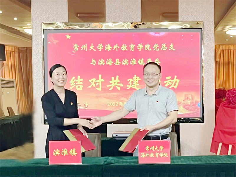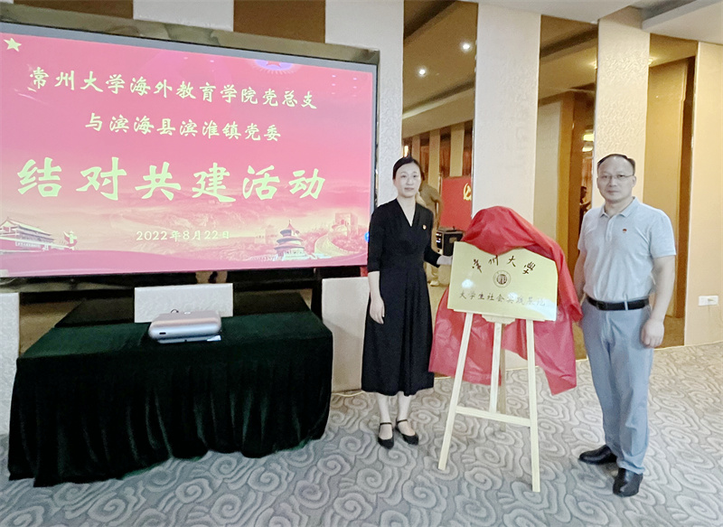 双方签署了常州大学海外教育学院党总支与滨淮镇党委结对共建协议、海外教育学院教工党支部与滨淮镇梁港村结对共建协议。海外教育学院党总支与滨淮镇党委举行了“常州大学大学生社会实践基地”揭牌仪式,并向梁港村村委捐赠了防暑用品,向2名家庭经济贫困的学生捐赠了学习用品。