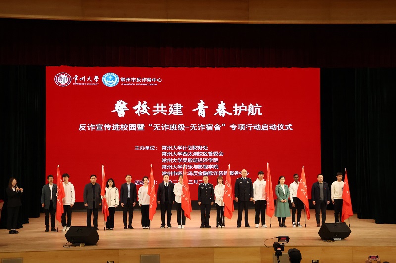 3月2日上午,反诈宣传进校园暨“无诈班级-无诈宿舍”专项行动启动仪式在西太湖校区立艺楼礼堂举行,常州市公安局、人保财险常州分公司和中国移动常州分公司等负责人受邀参加活动,计财处、西太湖校区管委会和相关学院负责人出席活动。