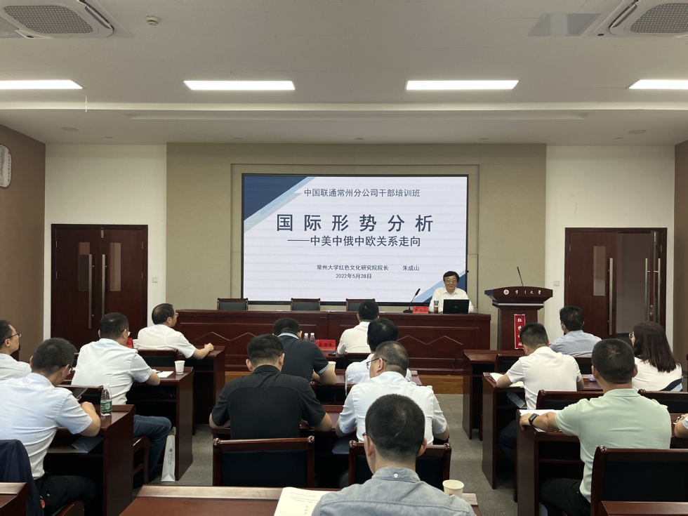 朱成山作《国际形势分析——中美中俄中欧关系走向》报告