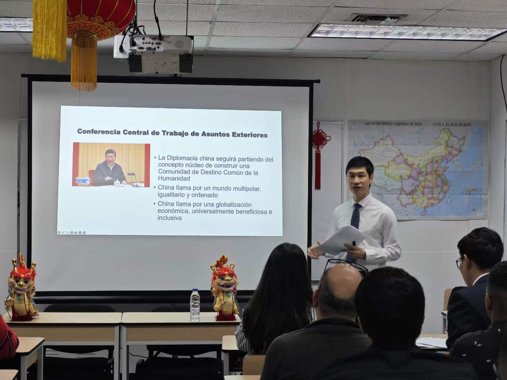 当地时间2月1日下午,中国驻委内瑞拉大使蓝虎应邀到我校玻利瓦尔大学孔子学院授课。课程的主题为“中国文化基因与当代中国外交政策”,使馆文化处、玻利瓦尔大学主要领导以及孔院师生代表共40余人到场聆听。
