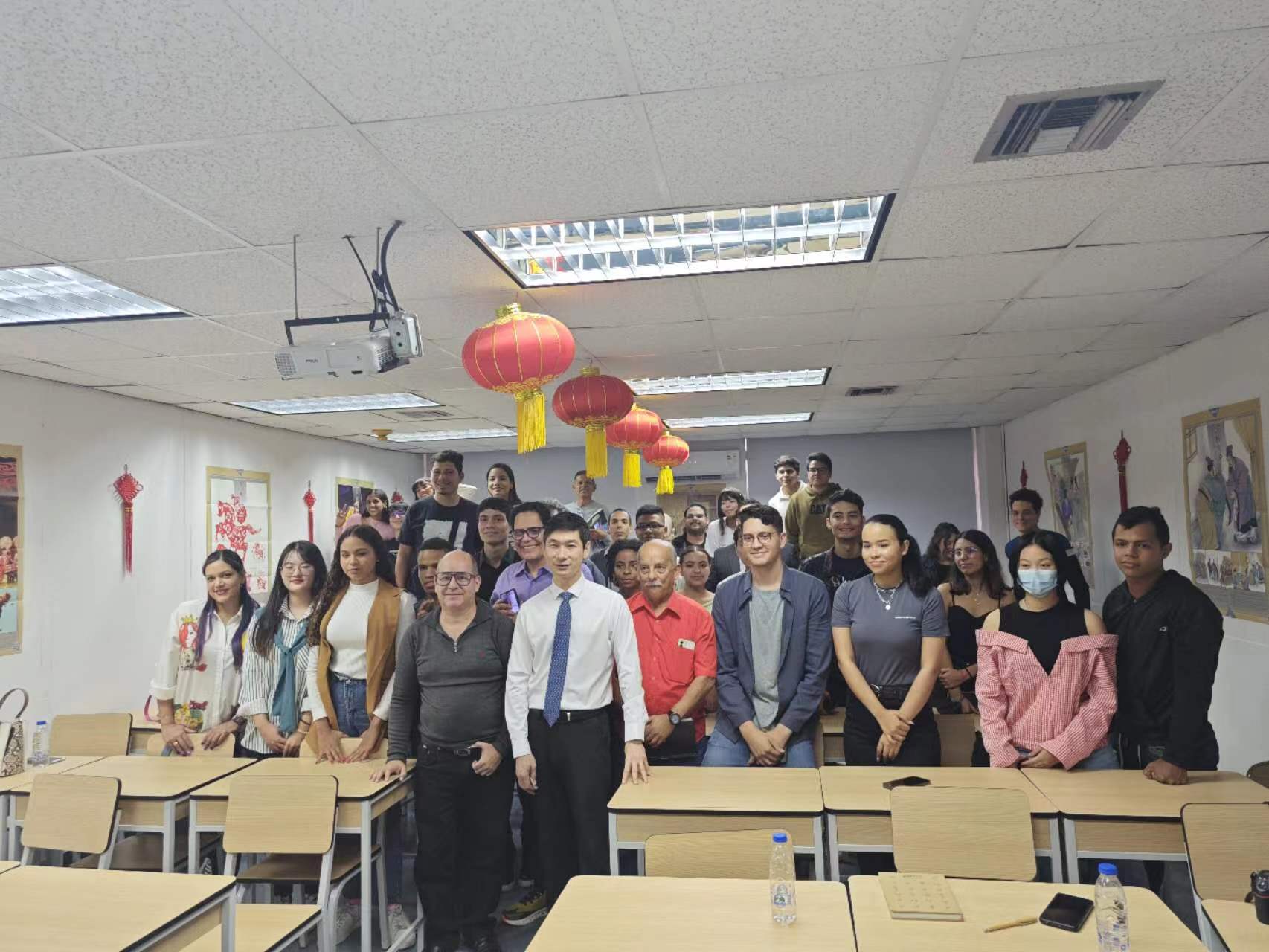 课堂上,蓝虎大使紧密结合新时代中国外交政策,解读中国的自然地理环境塑造中华文明起源的内在逻辑,深刻阐释了中华民族文化基因与精神内核同现代中国外交政策的紧密联系,全面介绍了新时代中国特色大国外交方针原则和主张倡议。