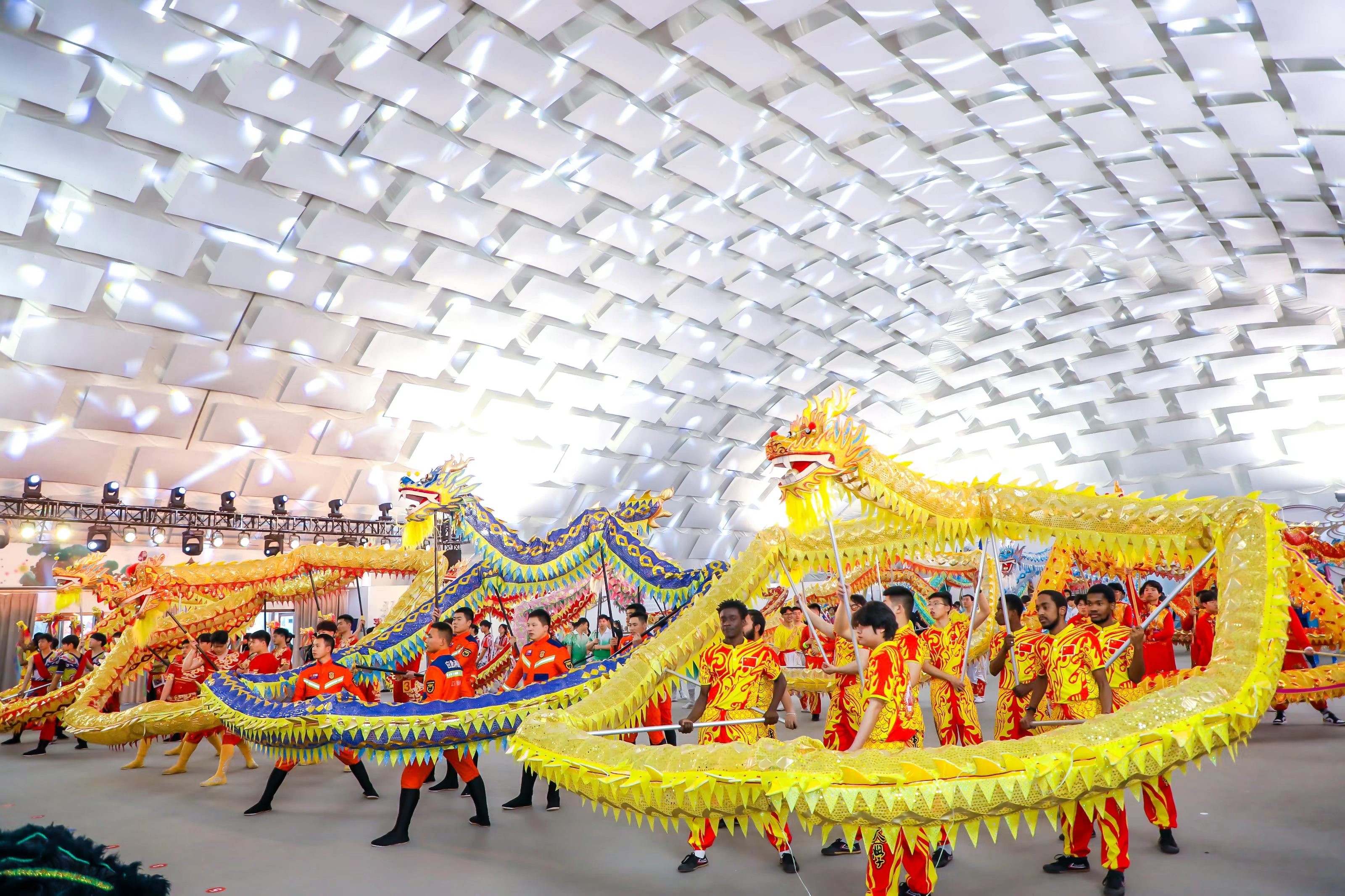 常州大学受组委会邀请派出了由缅甸、孟加拉国、津巴布韦、加纳、尼日利亚等国家的留学生和中国学生共同组成的一支“中外卓越”舞龙队参加本次比赛并获得优胜奖第三名的好成绩。这是我校留学生舞龙队首次外出参加该项重要赛事,也是他们在中国度过的一个非常难忘的春节假期,他们用中国的传统舞龙传递了他们对中国传统文化的喜爱,表达了他们对大家新年的祝福,精彩、动感、热情的表演获得了主办单位和现场观众的一致好评。