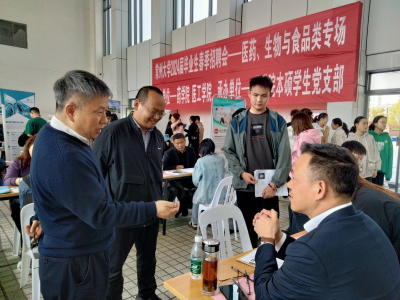 招聘会吸引了常州延陵电子设备有限公司、朗合医疗器械有限公司等50多家知名用人单位参会,提供岗位200余个。药学、制药工程、生物与医药、生物技术与工程和生物化工等专业研究生119名毕业生,制药工程、药学、生物工程、食品质量与安全、生物医学工程、护理学等本科专业生442名毕业生参加招聘会。招聘会现场,各招聘展位前,前来咨询的学生络绎不绝,各招聘单位对岗位细则、学历要求、招聘人数等一一进行说明。