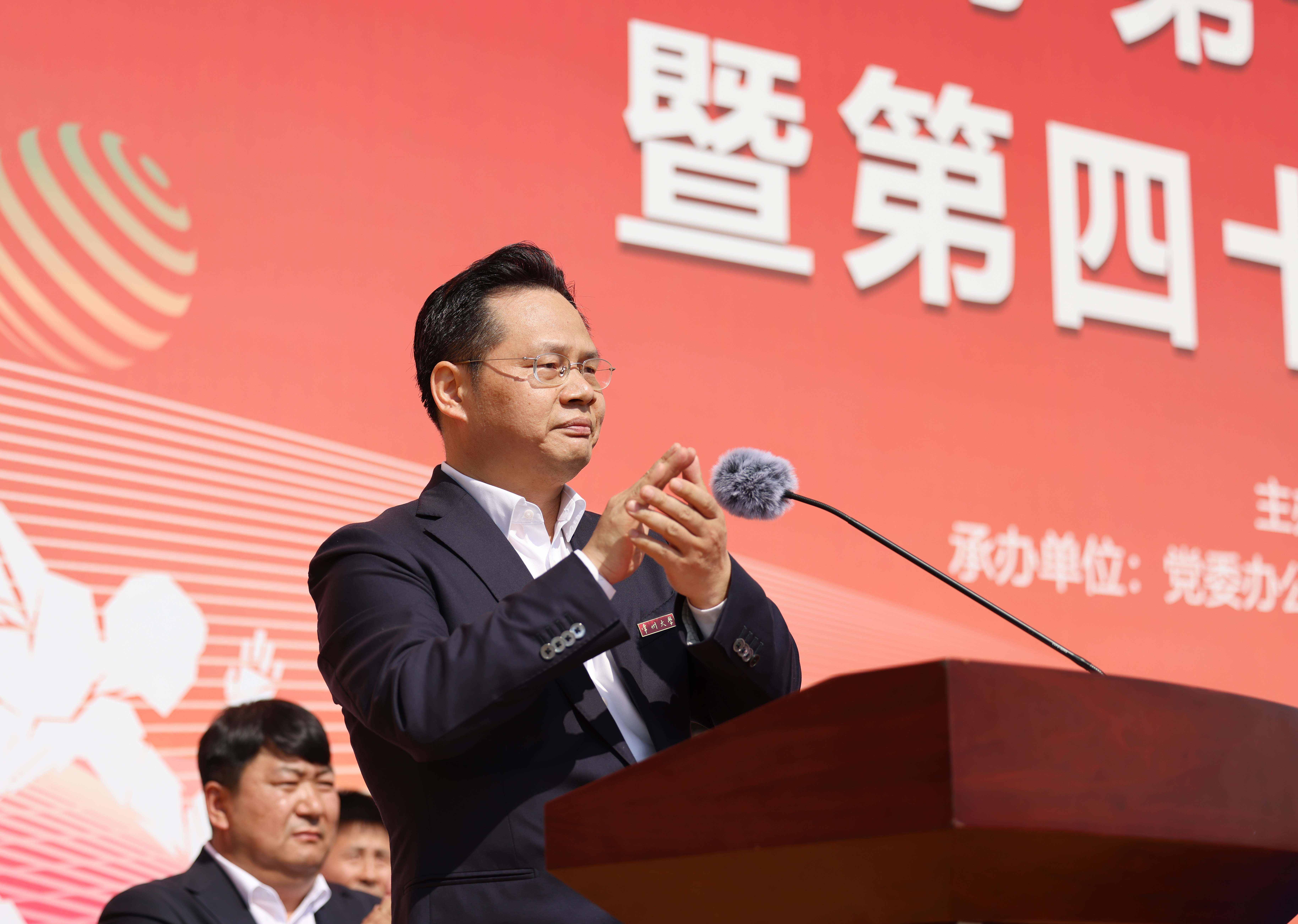 沈新奎宣布常州大学第十九届体育健身节暨第四十届田径运动会开幕。