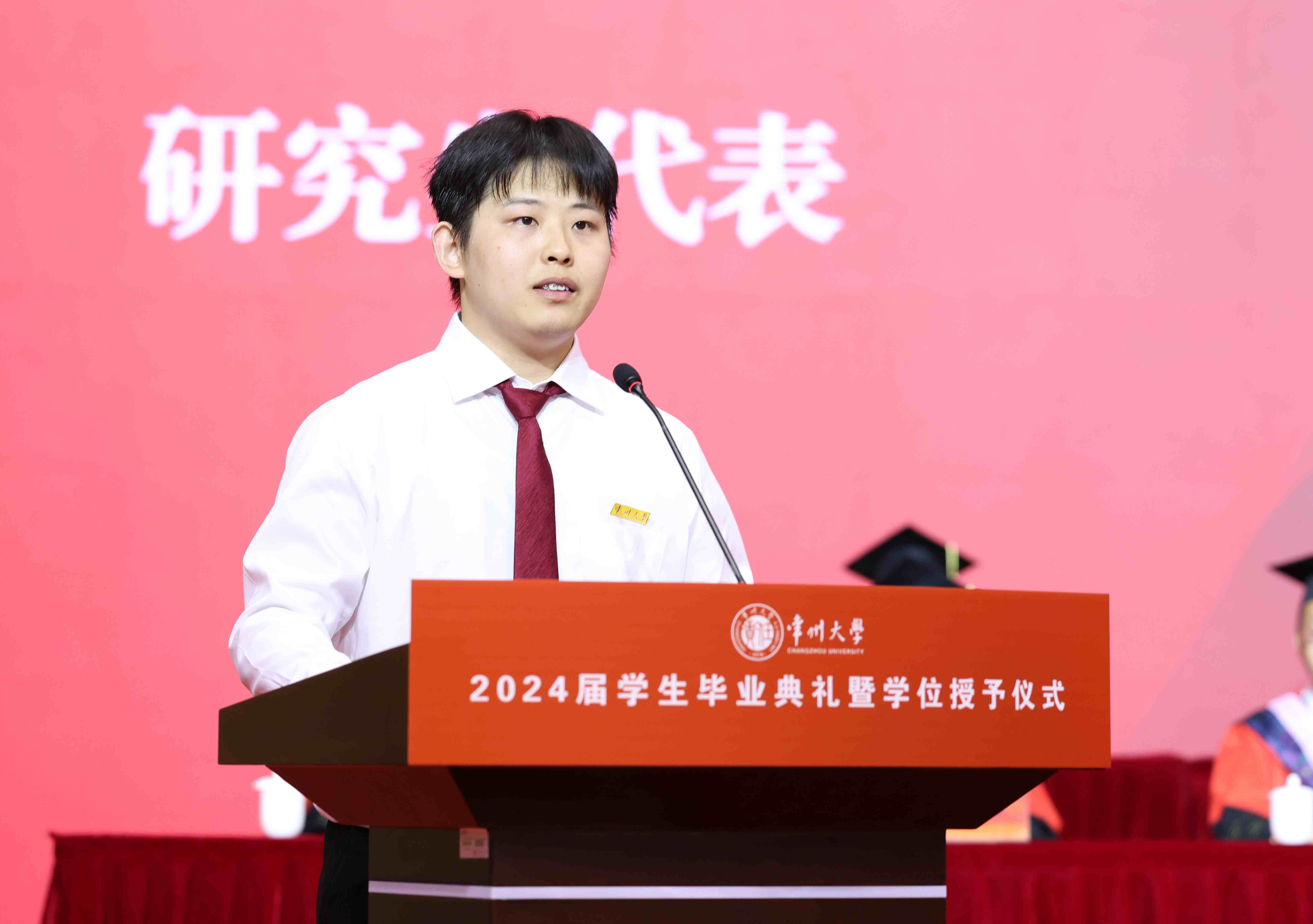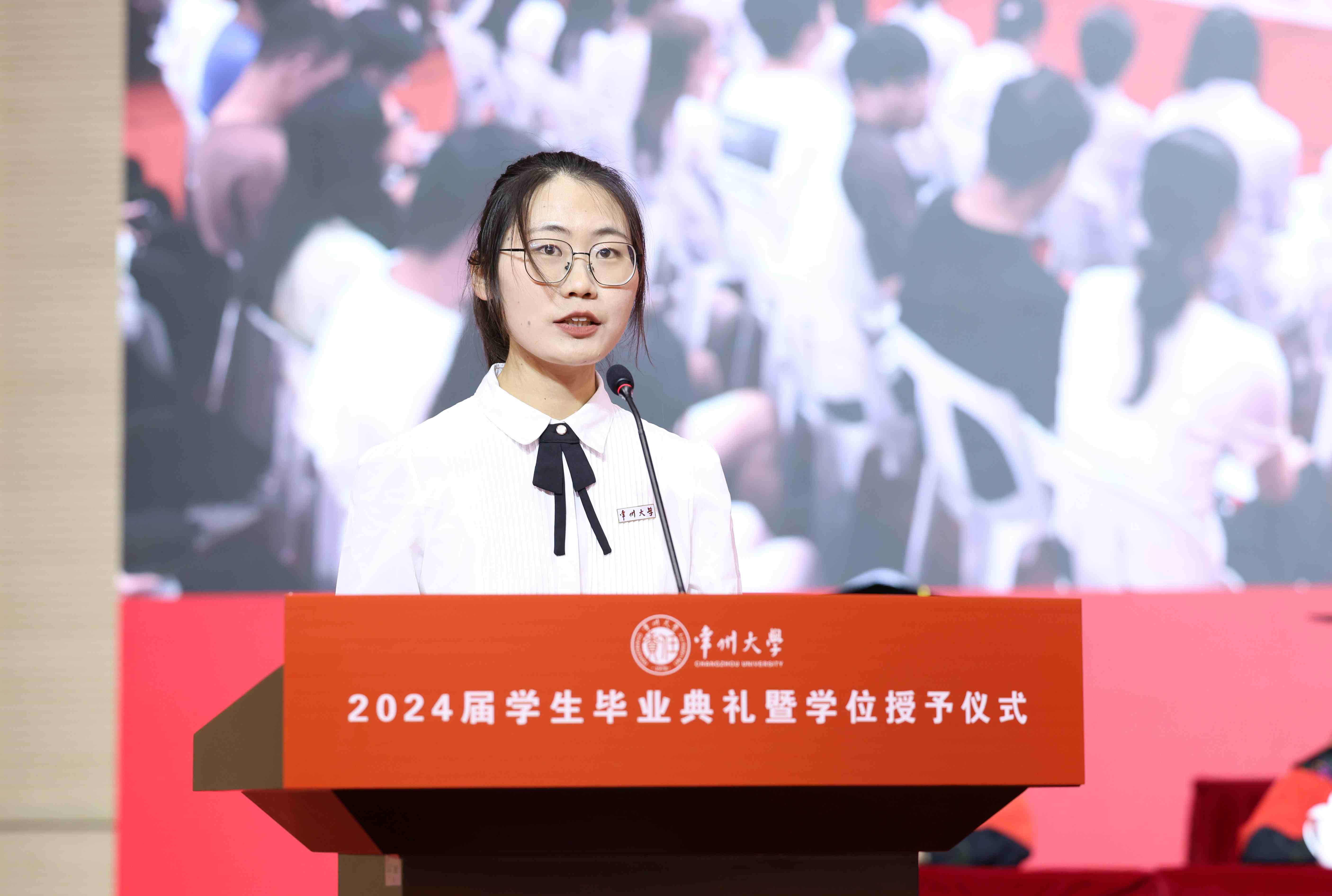 瞿秋白政府管理学院崔福缘、石油化工学院邓修政和商学院、刘国钧管理学院美莎分别作为本科生代表、研究生代表和留学生代表发言。学生代表们回顾了在常大携手奋进的峥嵘岁月,号召毕业生们不惧风雨、勇担重任,继续拼搏奋进,在各行业发光发热。