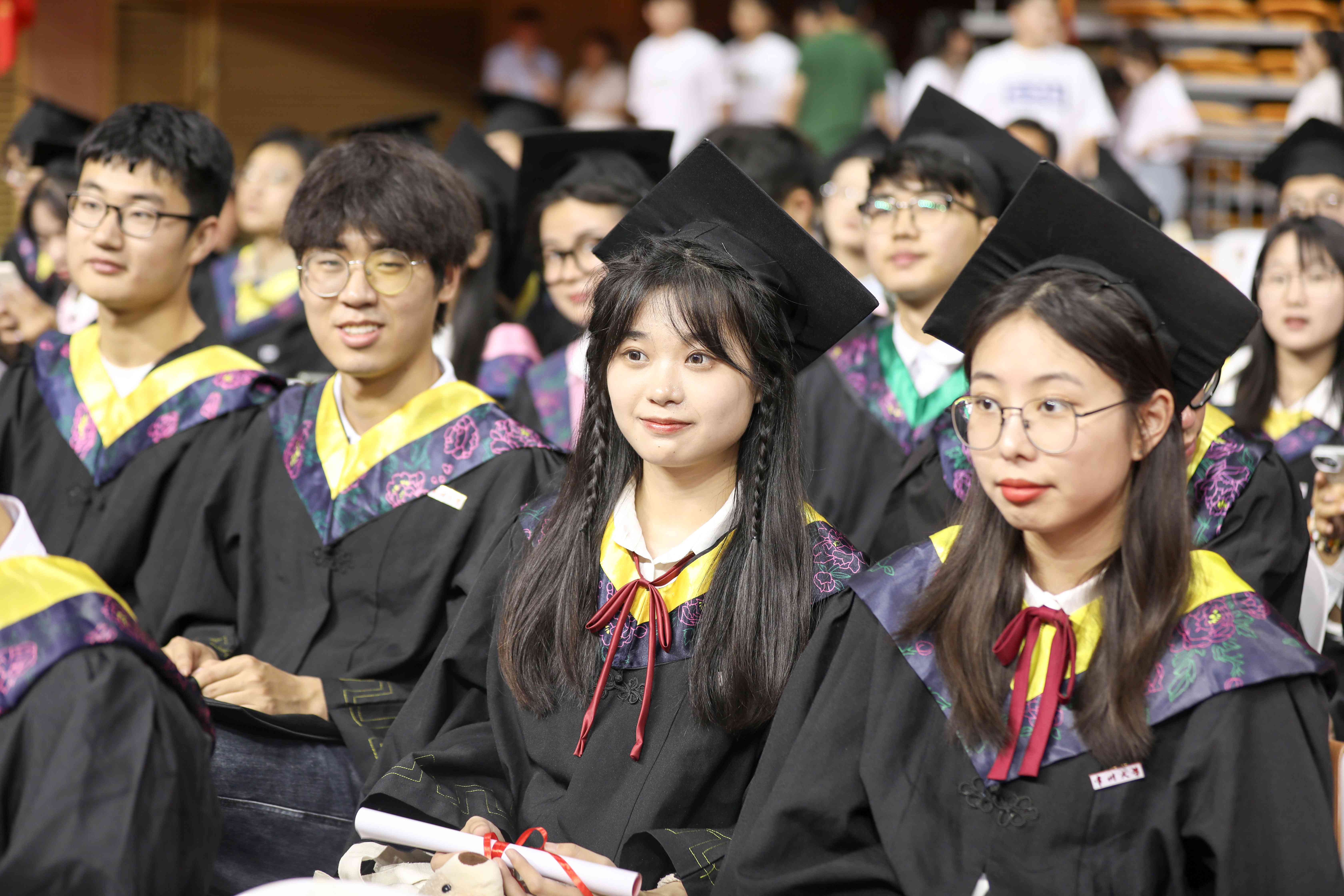 典礼开始前,大屏幕上循环播放学院制作的毕业主题暖场视频,从青涩稚嫩到大方从容,一张张照片承载了2024届毕业生们共同的大学时光,四年的青春记忆和大学生涯的美好时刻引起了现场每一位毕业生的强烈共鸣。
