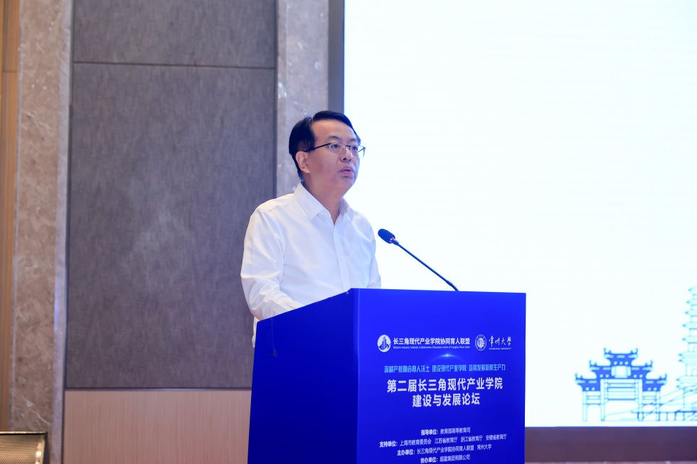 为学习贯彻落实习近平总书记在深入推进长三角一体化发展座谈会上的重要讲话精神,加快推进长三角现代产业学院高质量发展,6月28-30日,第二届长三角现代产业学院建设与发展论坛在常州举行。论坛由教育部高等教育司指导,上海市教育委员会、江苏省教育厅、浙江省教育厅、安徽省教育厅支持开展,长三角现代产业学院协同育人联盟、常州大学主办,超星集团有限公司协办。教育部高等教育司理工科教育处处长郝杰,江苏省教育厅二级巡视员周亚君,常州市人民政府副市长蒋鹏举,校党委书记徐守坤等出席大会,来自联盟百余所高校、相关企事业单位的嘉宾和代表300余人参加会议。