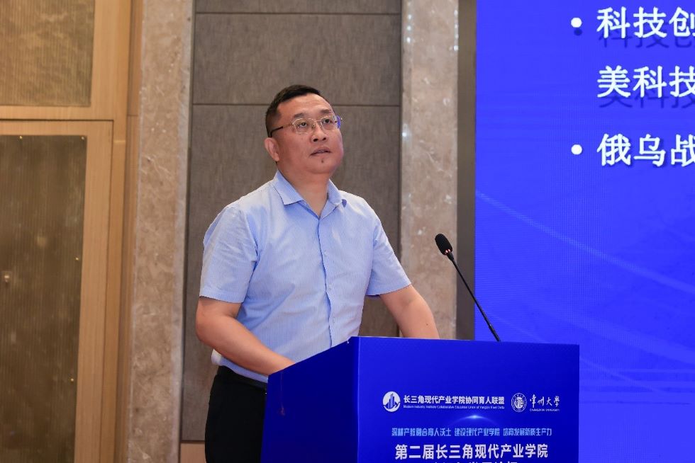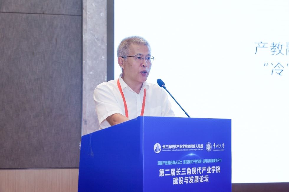 主旨演讲环节,长三角国家技术创新中心主任助理、江苏省产业技术研究院副院长郜军作题为《构建产学研用深度融合的创新体系和生态,培育发展新质生产力》、华中科技大学教育科学研究院博士生导师、《高等工程教育研究》常务副主编余东升作题为《应用型高校产教融合核心能力的提升:产业学院建设的关键点》的主旨报告。