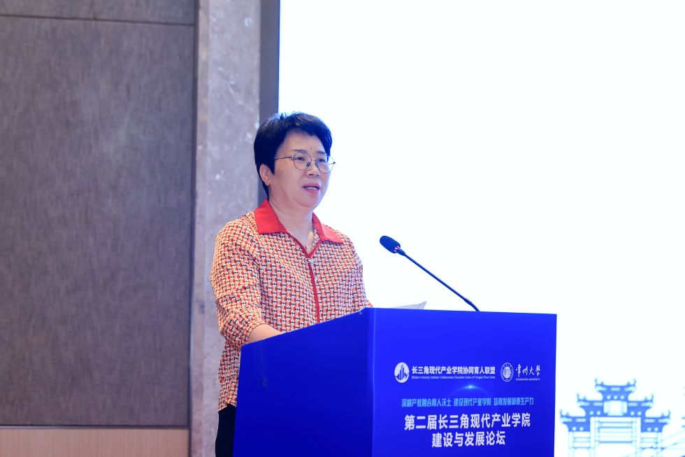 论坛报告环节,西南交通大学中车时代微电子学院执行院长郝莉作题为《高等工程教育改革背景下现代产业学院建设的思考与实践》,南京工业大学2011膜产业学院院长顾学红作题为《科产教协同育人赋能新质生产力路径探索》、浙江省教育厅职业教育与成人教育处调研员侯蔚作题为《人工智能时代长三角区域校企政投协同发展路径探索》,华东理工大学现代生物医药产业联合学院副院长刘金库作题为《前瞻思维融合优势资源,打造特色现代产业学院》,浙江工业大学数字化制造产业学院副院长裴植作题为《新工科背景下国家级现代产业学院建设的创新思考与实践》,安徽工程大学机器人现代产业学院院长许德章作题为《机器人工程专业实践教学体系构建和实践基地建设》,温州医科大学眼视光产业学院执行院长陈洁作题为《温州医科大学眼视光产业学院建设探索与实践》,盐城工学院党委常委、副校长王伟作题为《依托产业学院深化课程改革-盐城工学院应用型人才培养实践》,常州大学党委常委、副校长李忠玉作题为《现代产业学院建设的探索与实践》的大会报告。