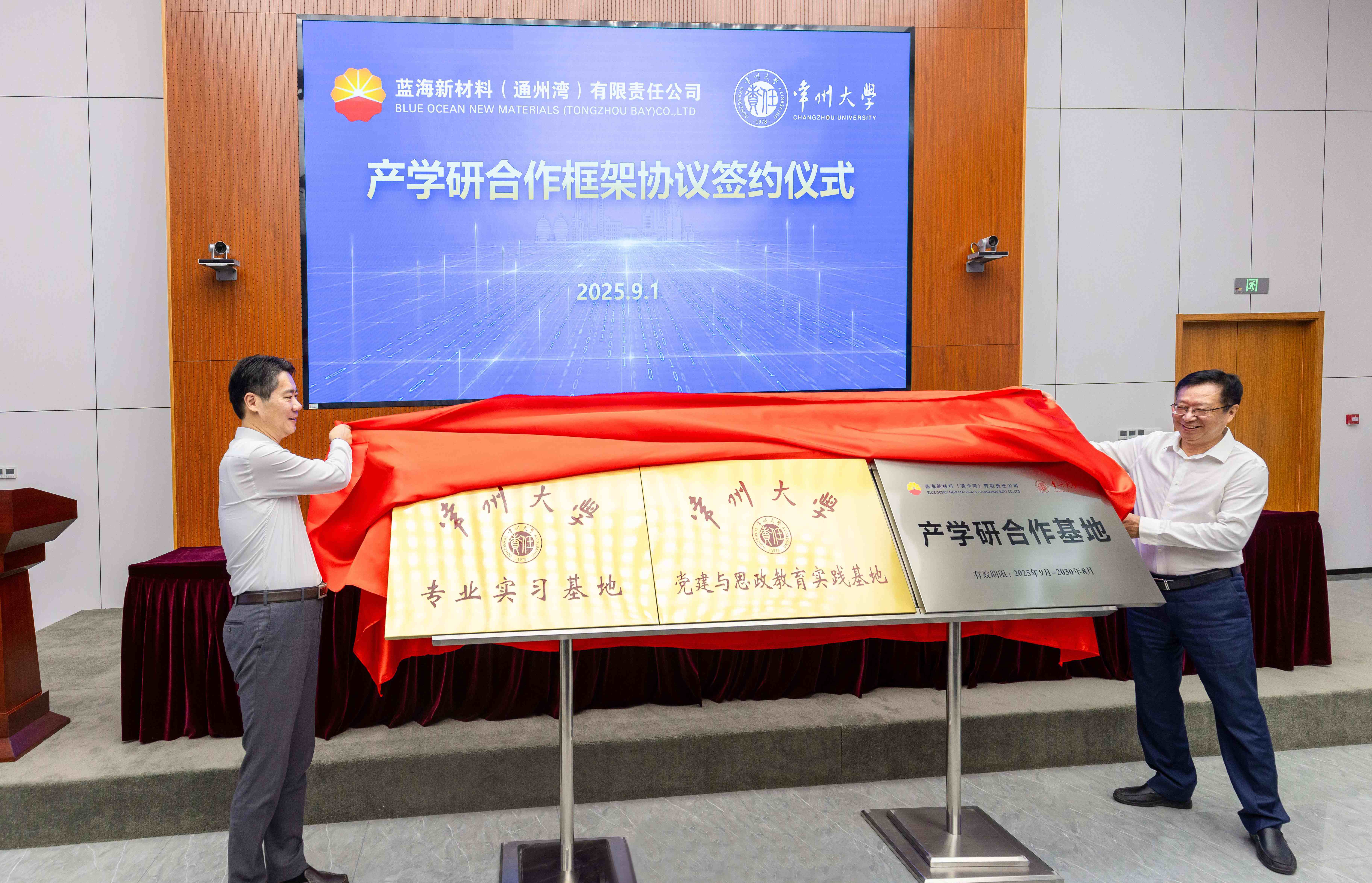 9月1日,常州大学与蓝海新材料(通州湾)有限责任公司(以下简称“蓝海新材料”)合作签约仪式举行。蓝海新材料党委书记、执行董事李贵合,总经理田春光,党委副书记、纪委书记、工会主席陶建文,党委委员、副总经理劳国瑞,以及设计管理部、生产技术部、综合管理部、(党委)办公室、党委组织部(人力资源部)相关负责人出席,常州大学党委副书记、校长陈海群,原党委书记陈群,副校长晏成林及党委组织部、学生工作部、能源化工行业创新处等相关部门负责人参加会议。田春光主持仪式。