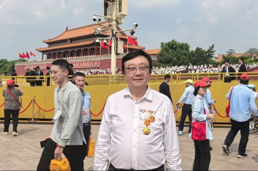 常州大学教授、红色文化研究院院长朱成山受邀在天安门广场现场观礼。朱成山曾任侵华日军南京大屠杀遇难同胞纪念馆馆长、研究馆员。2015年,作为全国五一劳动奖章获得者,他有幸参加了抗战胜利70周年阅兵。