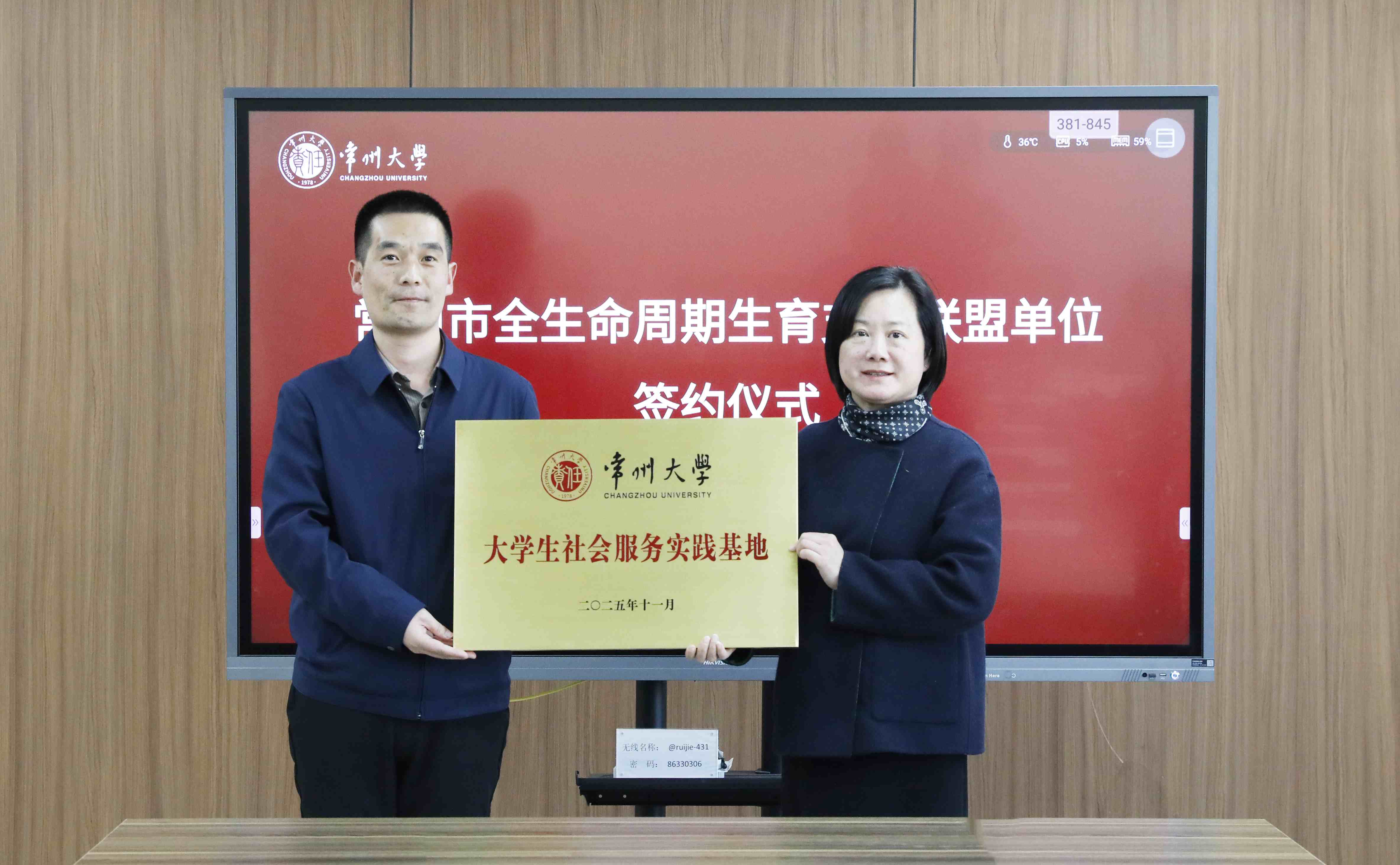 签约仪式上,徐守坤代表学校致欢迎辞。他强调,高校、医院与民主党派市级组织加强协作,对于共同应对人口问题具有重大意义。刘志伟介绍了开展健康高校行活动的初衷和思路。孙秀峰在讲话中充分肯定了常州大学在支持党派建设和服务常州社会发展方面所做出的突出贡献。市妇幼保健院、九三学社市委会、常州大学三方现场签署了“全生命周期生育支持联盟单位协议书”,学校向市妇幼保健院颁授“大学生社会服务实践基地”铜牌。