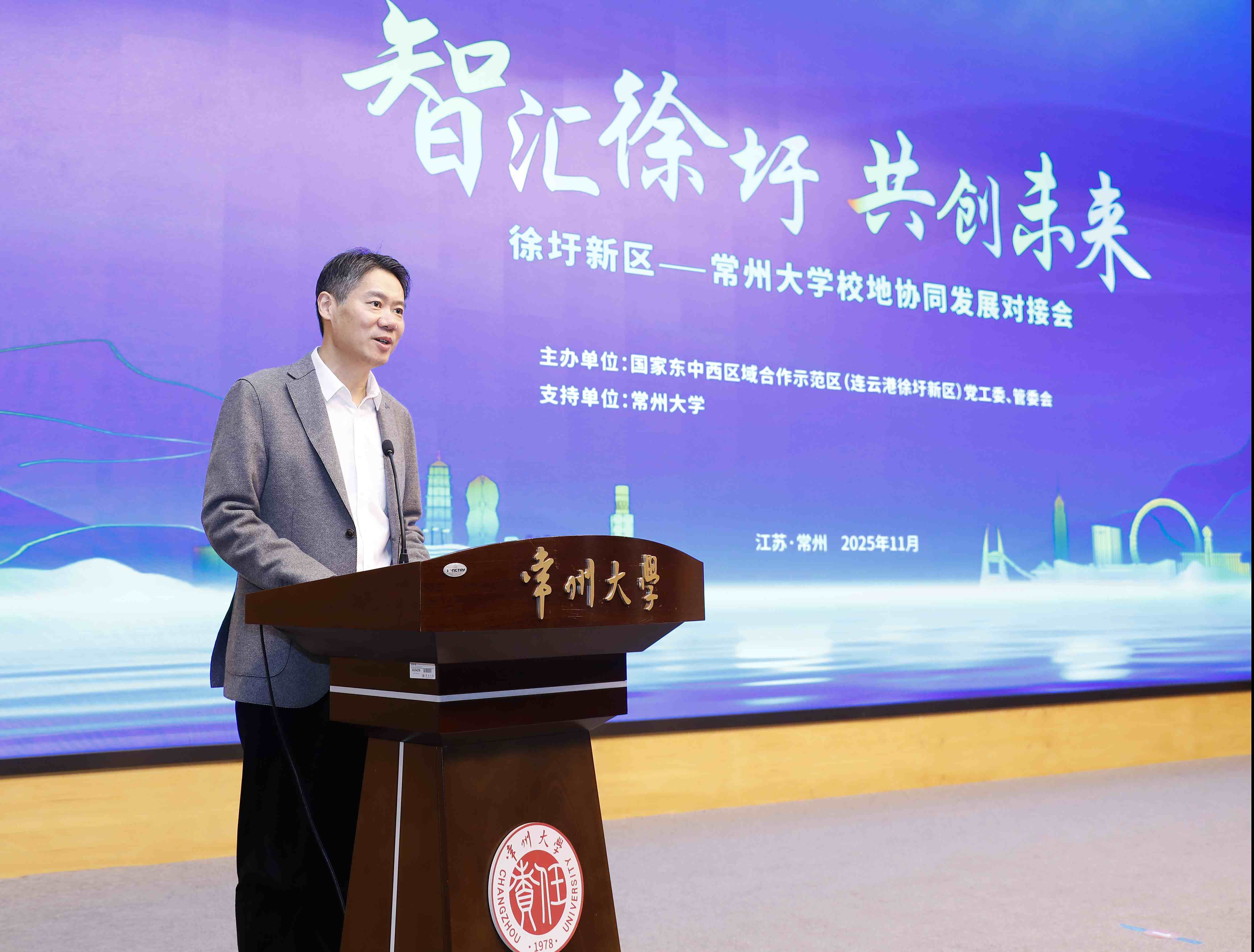 校地协同专场推介会播放了连云港城市宣传片、连云港市人才宣传片及徐圩新区宣传片。陈海群在致辞中表示,学习宣传党的二十届四中全会精神之际,徐圩新区与常州大学开启校地协同发展新篇章,既是推动科创与产业融合、发展新质生产力的布局,也是践行教科研一体、助力建设经济大省教育强省的举措。他指出,徐圩新区是国家重点石化基地,正打造万亿集群,常州大学与徐圩新区同根共源,化工等学科与徐圩新区产业高度契合,此次合作是共赢之举。他希望以此为契机,与徐圩新区展开更大范围、更宽领域、更深层次的校地企合作。