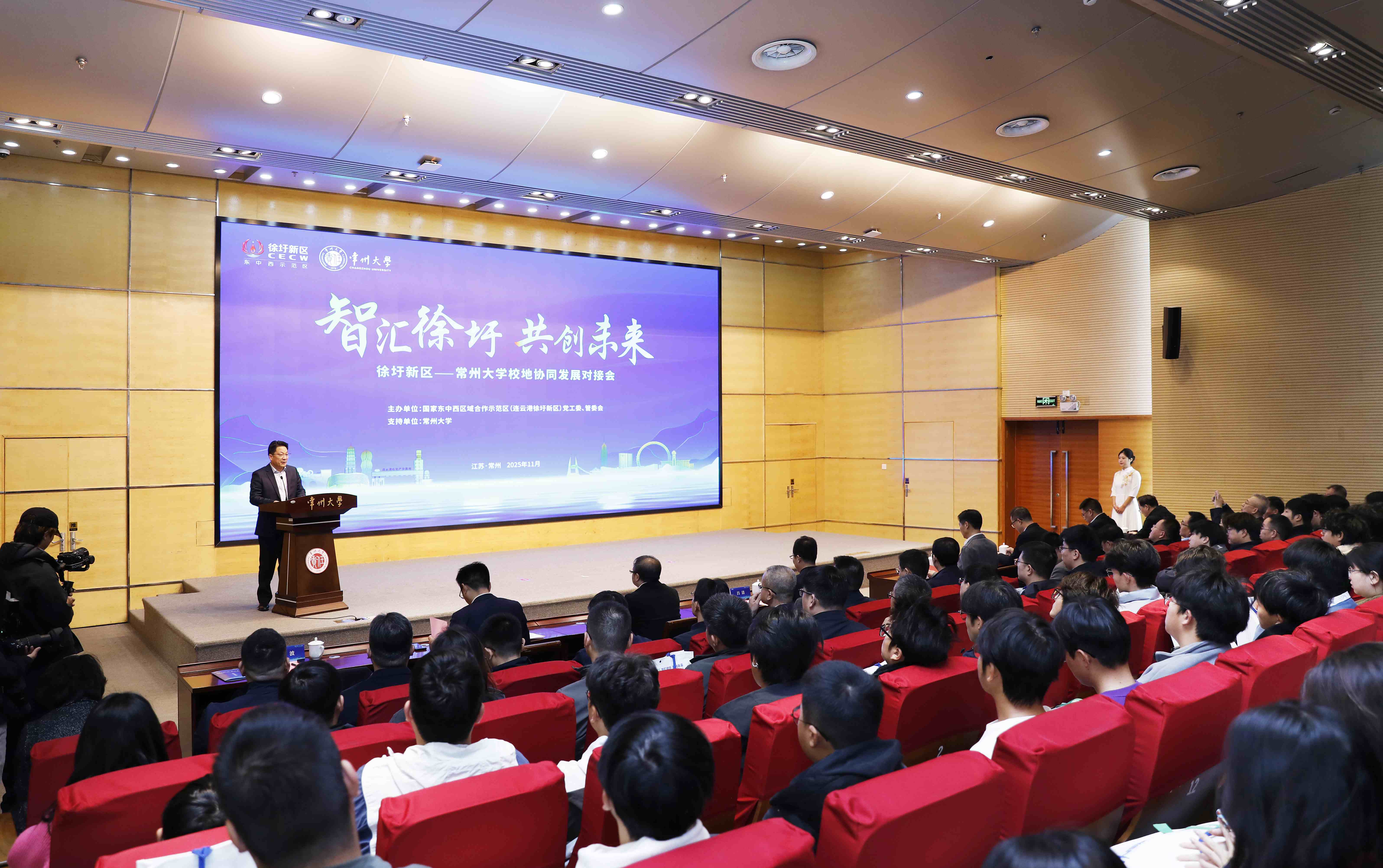 11月25日,徐圩新区与常州大学联合举办的校地协同发展对接会在常州大学举行。此次活动通过校地协同专场推介、专场招聘、产学研合作对接、校地协同发展座谈等多种形式,搭建起双方深度合作的桥梁,推动双方在人才培养、科技创新、成果转化等多个领域展开全面合作。连云港市政府副市长、徐圩新区党工委书记吕洁,徐圩新区党工委委员、管委会副主任贺波,徐圩新区党工委委员、徐圩新区第五批科技镇长团团长周江,徐圩新区党工委委员、党群工作部部长孙善军,常州大学党委副书记、校长陈海群,党委常委、副校长周刚,党委常委、副校长李亚飞,党委常委、组织部部长秦义出席会议,常州大学学生工作处、产学研合作处、继续教育学院、石油化工学院、材料科学与工程学院、环境科学与工程学院、城市建设学院相关负责人和近千名常大学子参加系列活动。