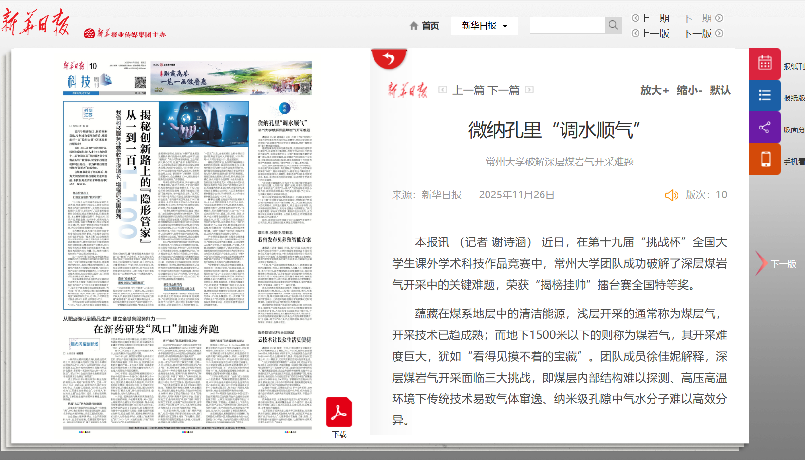近日,在第十九届“挑战杯”全国大学生课外学术科技作品竞赛中,常州大学团队成功破解了深层煤岩气开采中的关键难题,荣获“揭榜挂帅”擂台赛全国特等奖。