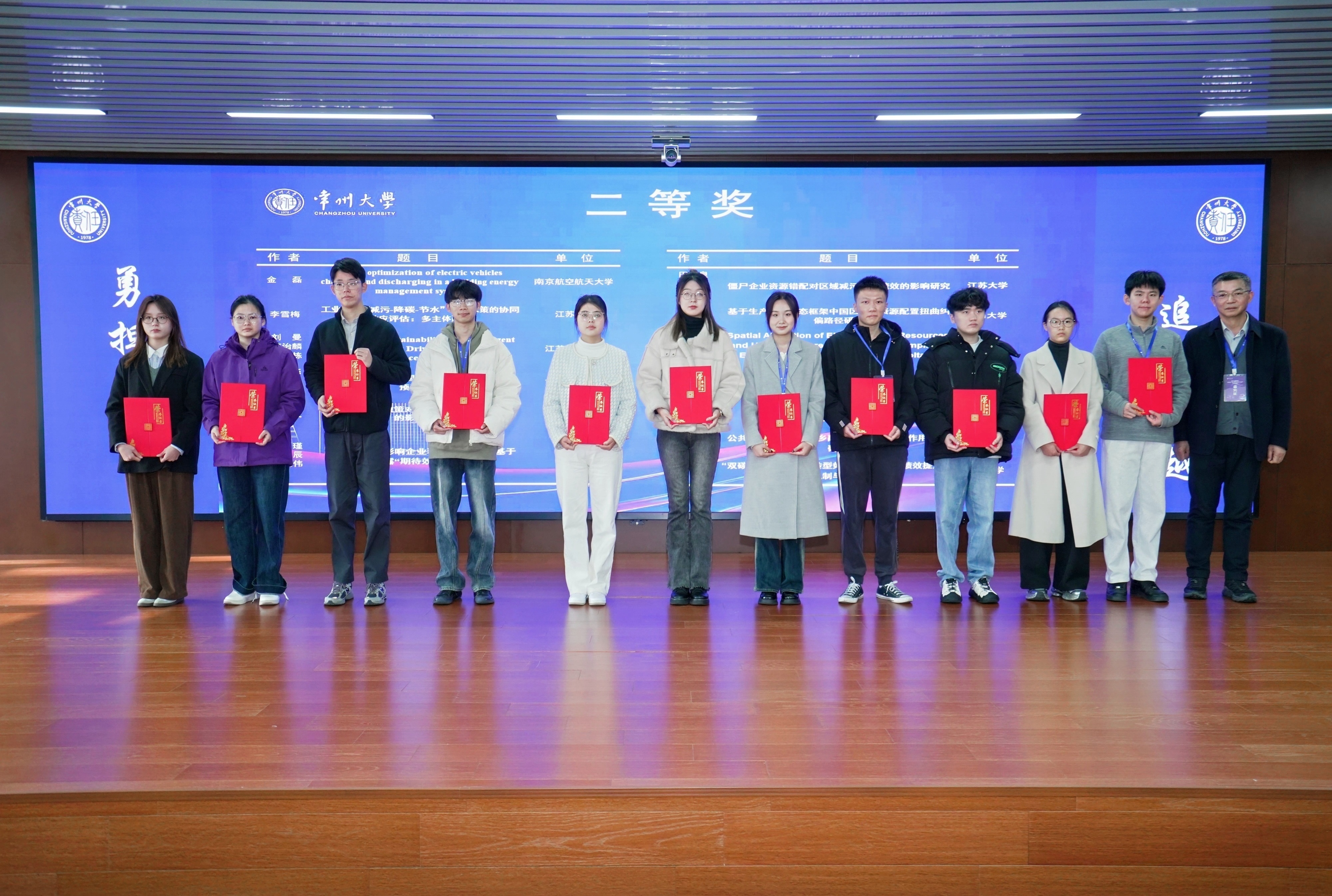 经专家评审,本次论坛评选出优秀论文一等奖6项、二等奖13项、三等奖20项。我校学生论文斩获等奖2项,二等奖5项,三等奖10项。获奖论文涵盖数字经济、绿色发展、新质生产力培育等多个研究方向,体现了江苏省研究生扎实的学术功底和敏锐的时代洞察力。周海炜、张玉林、黄海燕分别为获奖代表颁发荣誉证书。