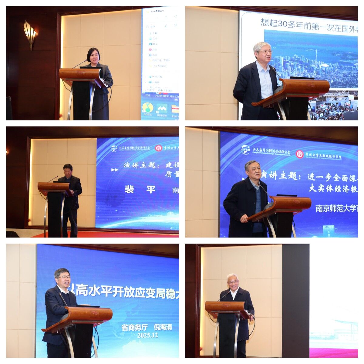 12月6日,2025年江苏省外国经济学说研究会学术年会暨吴敬琏经济大讲堂第五讲在常州大学举办。本次年会由江苏省哲学社会科学界联合会、常州大学联合指导,江苏省外国经济学说研究会(以下简称“学会”)主办,常州大学吴敬琏经济学院统筹承办。活动紧扣党的二十届四中全会提出的“加快高水平科技自立自强,引领发展新质生产力”重大战略部署,立足江苏“扛起经济大省挑大梁责任”的战略定位,聚焦新质生产力发展的理论创新与政策实践等前沿议题,既为江苏开放型经济高质量发展提供了坚实的智力支撑,也为常州大学对接学术前沿、服务地方发展搭建了重要桥梁。