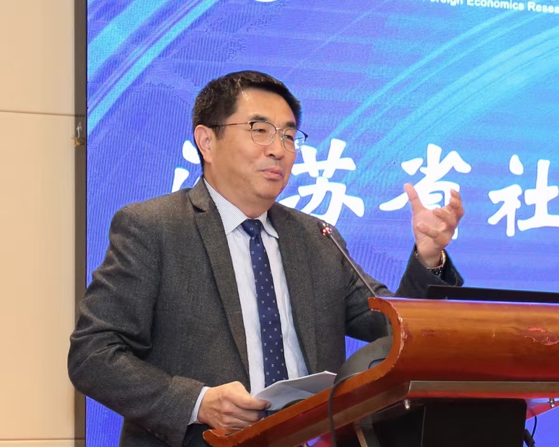 主旨演讲环节,主办方特邀东南大学经济管理学院徐康宁教授、南京大学商学院裴平教授、南京师范大学商学院蒋伏心教授、江苏省商务厅副厅长倪海清、南京财经大学原副校长张为付教授作主旨分享。各位专家学者围绕扩大制度型开放、建设金融强省、巩固壮大实体经济根基、以高水平开放应变局稳大局开新局、中美博弈优劣势分析等关键议题,深入阐释观点、分享前沿洞见。该环节由淮阴师范学院副校长张言彩教授与江苏大学财经学院院长胡绪华教授联合主持。