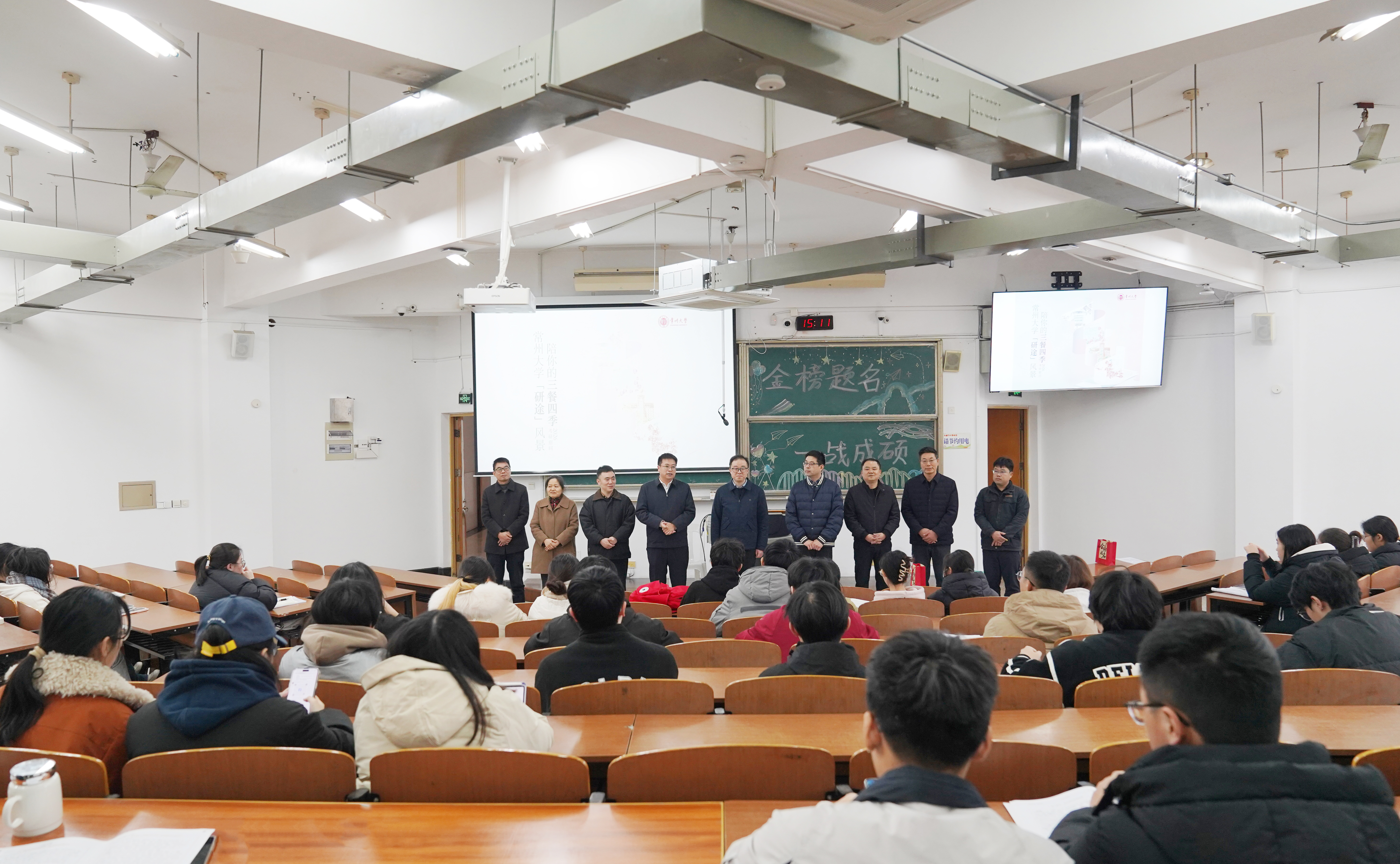 在备战2026年全国硕士研究生招生考试最后冲刺的关键时刻,为切实做好考研学生的服务保障工作,帮助他们缓解压力、坚定信心,12月12日下午,党委常委、副校长周刚,党委常委、副校长李亚飞深入两校区考研教室和“一站式”学生社区走访慰问考研学生。教务处、学生处、后勤管理处、西太湖校区管委会、资产经营公司等相关职能部门及相关学院负责人陪同慰问。