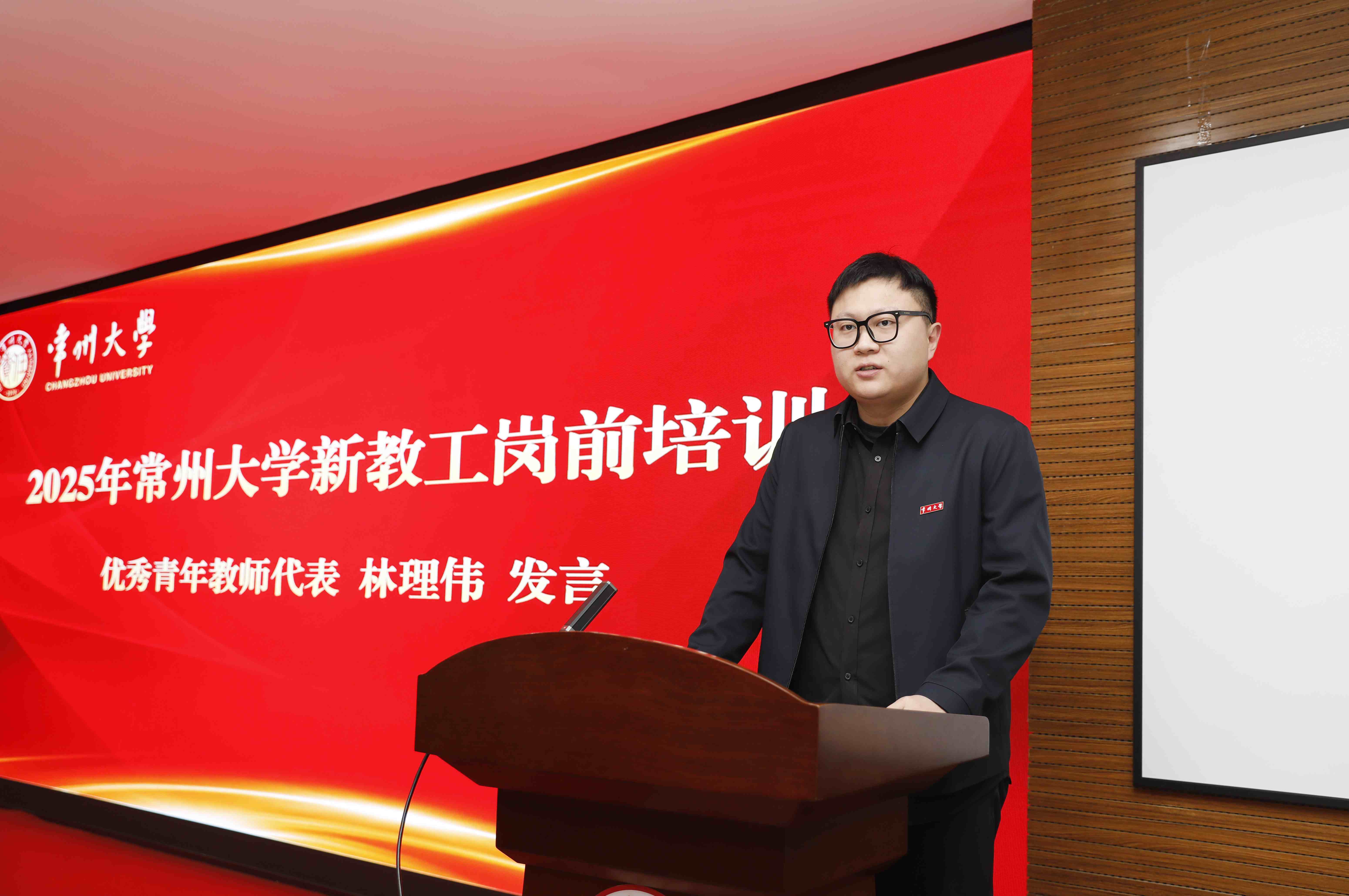 优秀青年教师代表林理伟博士结合自己的成长经历,围绕“向下扎根”的执着、“向外探索”的勇气、“向上生长”的信念等方面进行了分享。他鼓励各位新教工深耕教学科研,探索产学研协同,凝聚集体力量,为学校高质量发展添砖加瓦。