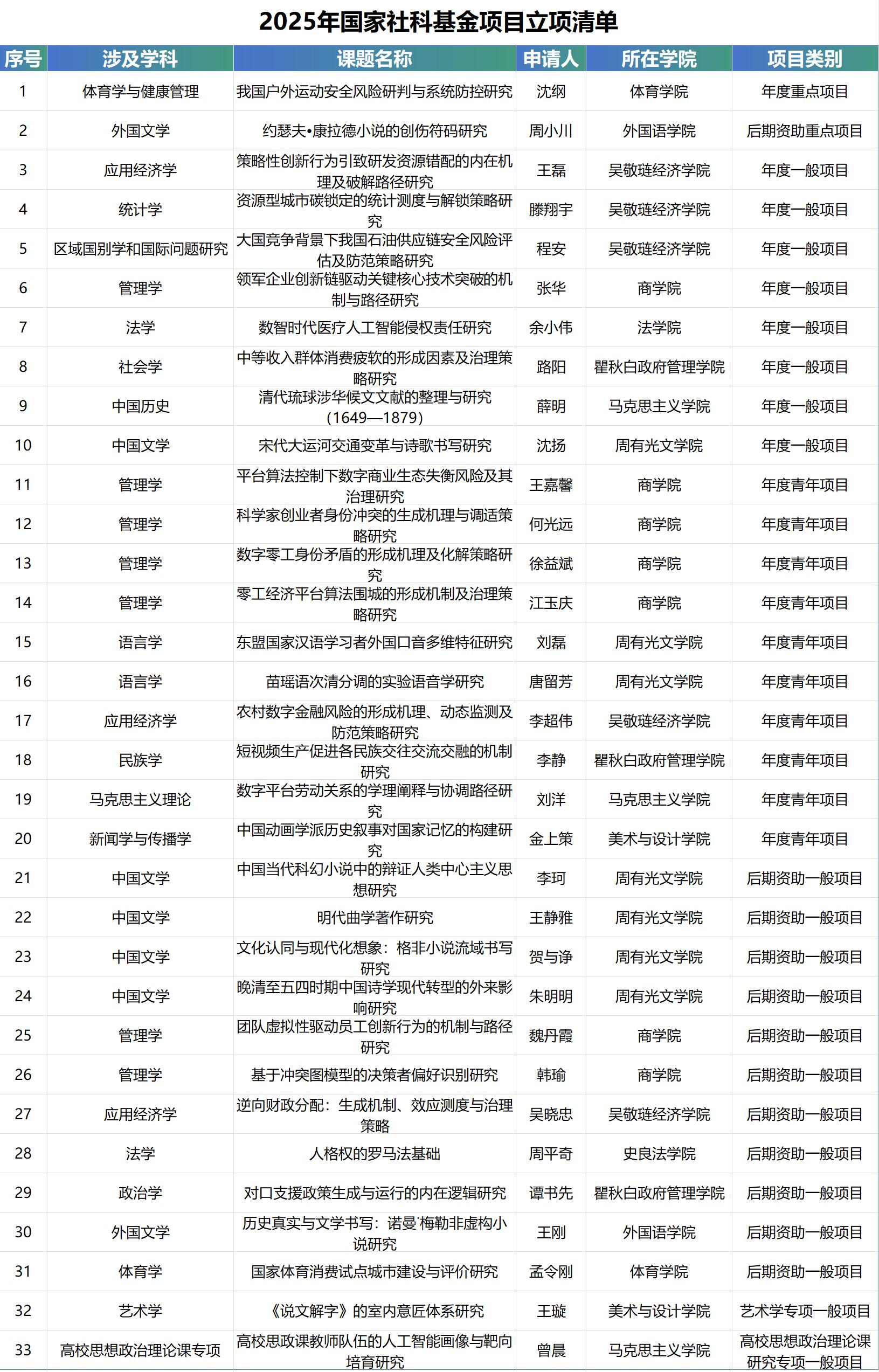 2025年国家社科基金项目立项清单