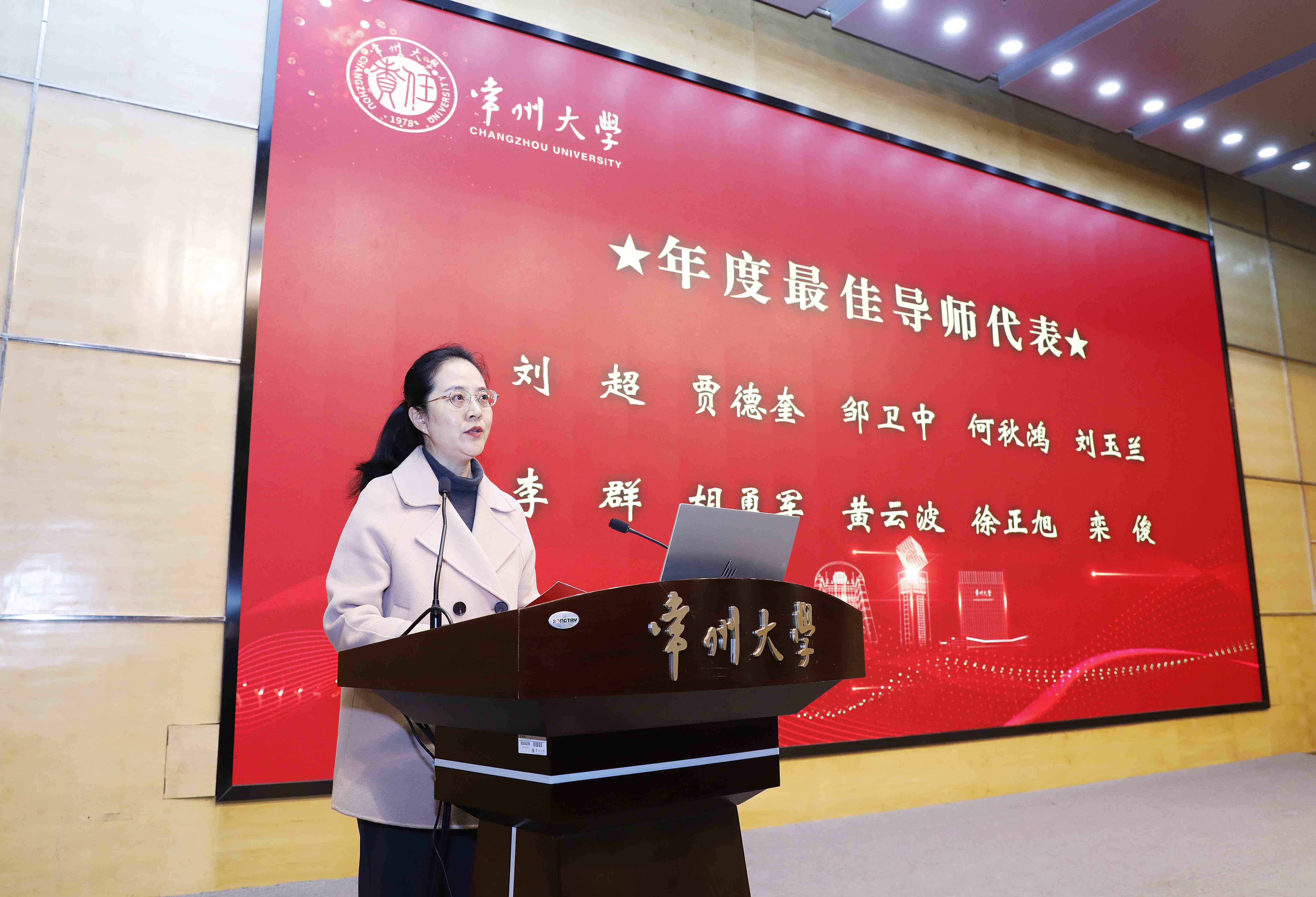 杨琳宣读了《致常州大学2025年哲学社会科学研究最佳导师的感谢信》。她指出,2026年是“十五五”开局之年,学校将文科科研工作主题定位为“成果年”,致力于实现从“量的积累”到“质的飞跃”的战略转型。在稳定项目上攻坚,筑牢成果产出的源头活水;在成果产出上攻坚,产出“立得住、传得开、留得下”的精品力作;在社会服务上攻坚,提高智库资政的转化效能。