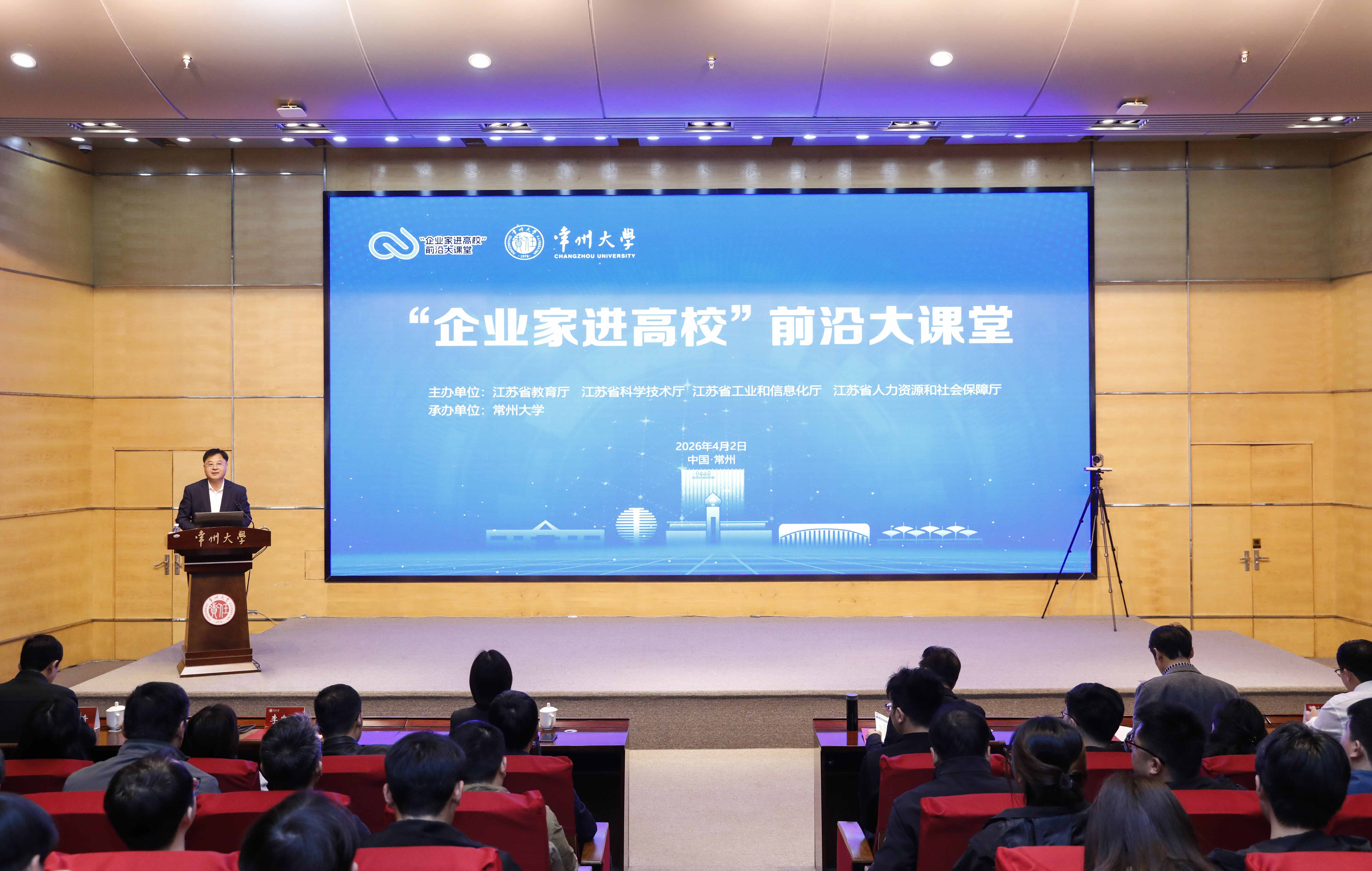 4月2日,“企业家进高校”前沿大课堂——《我国石油天然气“井工程”技术进展、发展建议与人才培养》在科教城校区文彰楼报告厅开讲。中国工程院院士,中国石油天然气集团科学技术协会主席,中国石油国家卓越工程师学院执行董事、院长,油气钻完井技术国家工程研究中心主任孙金声,我校党委副书记、校长陈海群,江苏省教育厅高等教育处副处长刘天宇出席活动,学校相关职能部门、学院负责人,以及石油与天然气工程学院300余名师生代表参加活动,线上观看人数破万人次。党委常委、副校长李忠玉主持活动。