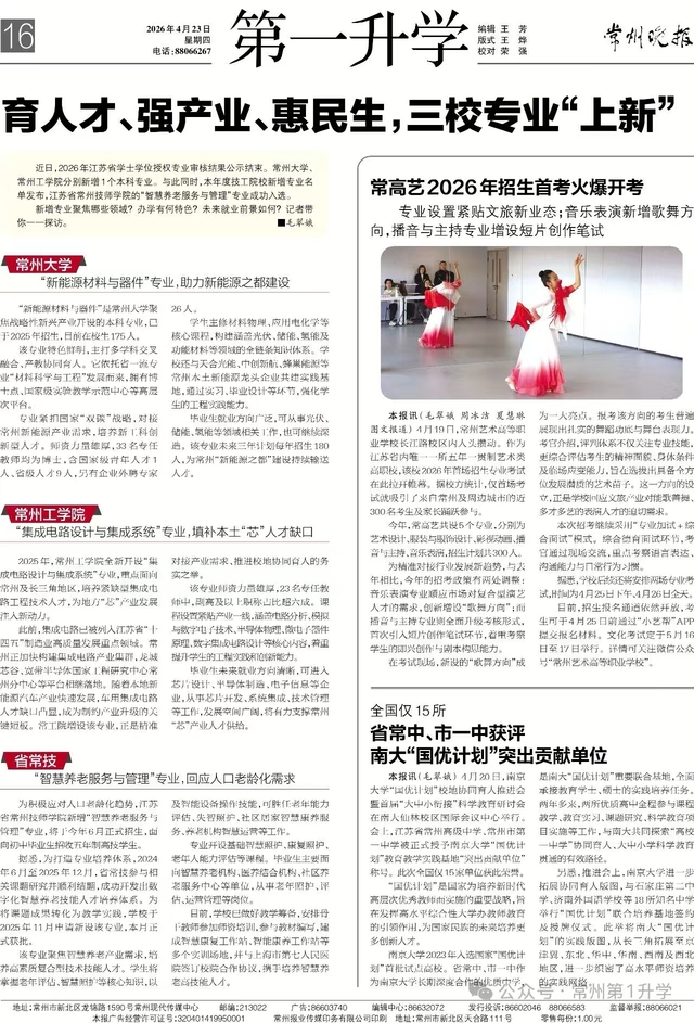 常州晚报:育人才、强产业、惠民生,三校专业“上新”