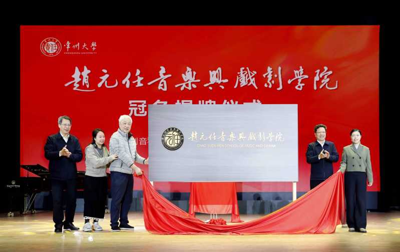 11月22日,赵元任音乐与戏剧学院冠名揭牌仪式暨原创音乐戏剧《教我如何不想她》首演在西太湖校区立艺楼礼堂举行。赵元任先生外孙黄家林教授,常州市委常委、宣传部部长陈志良,江苏省教育厅体育卫生与艺术教育处二级调研员王红蕾,清华大学艺术教育中心主任赵洪,常州市委宣传部副部长谢春林,常州市文学艺术界联合会党组书记、主席沈玉俊,常州市委宣传部办公室主任魏火军,江苏晋陵文旅发展集团有限公司董事长苏刚,内蒙古自治区教育厅美育指导委员会秘书长张卉,上海市学校体育与艺术发展评估中心常务副主任张欢,常州大学党委书记徐守坤,常州大学党委副书记黄海燕,常州大学党委常委、副校长杨琳出席仪式,常州市和武进区相关部门领导、上海音乐学院及省内兄弟院校音乐学院的领导和专家、学校相关职能部门和相关学院负责人、赵元任音乐与戏剧学院全体师生等齐聚一堂,共同见证这一重要时刻。黄海燕主持仪式。徐守坤在致辞中向黄家林教授及各位领导嘉宾的到来表示感谢。他指出,此次冠名既是对赵元任先生学术成就与家国情怀的深切致敬,更是常州大学深耕艺术教育、厚植常州文化根脉的坚实一步。他表示,站在新的起点,常州大学将把赵元任先生的精神当教材,深耕音乐与